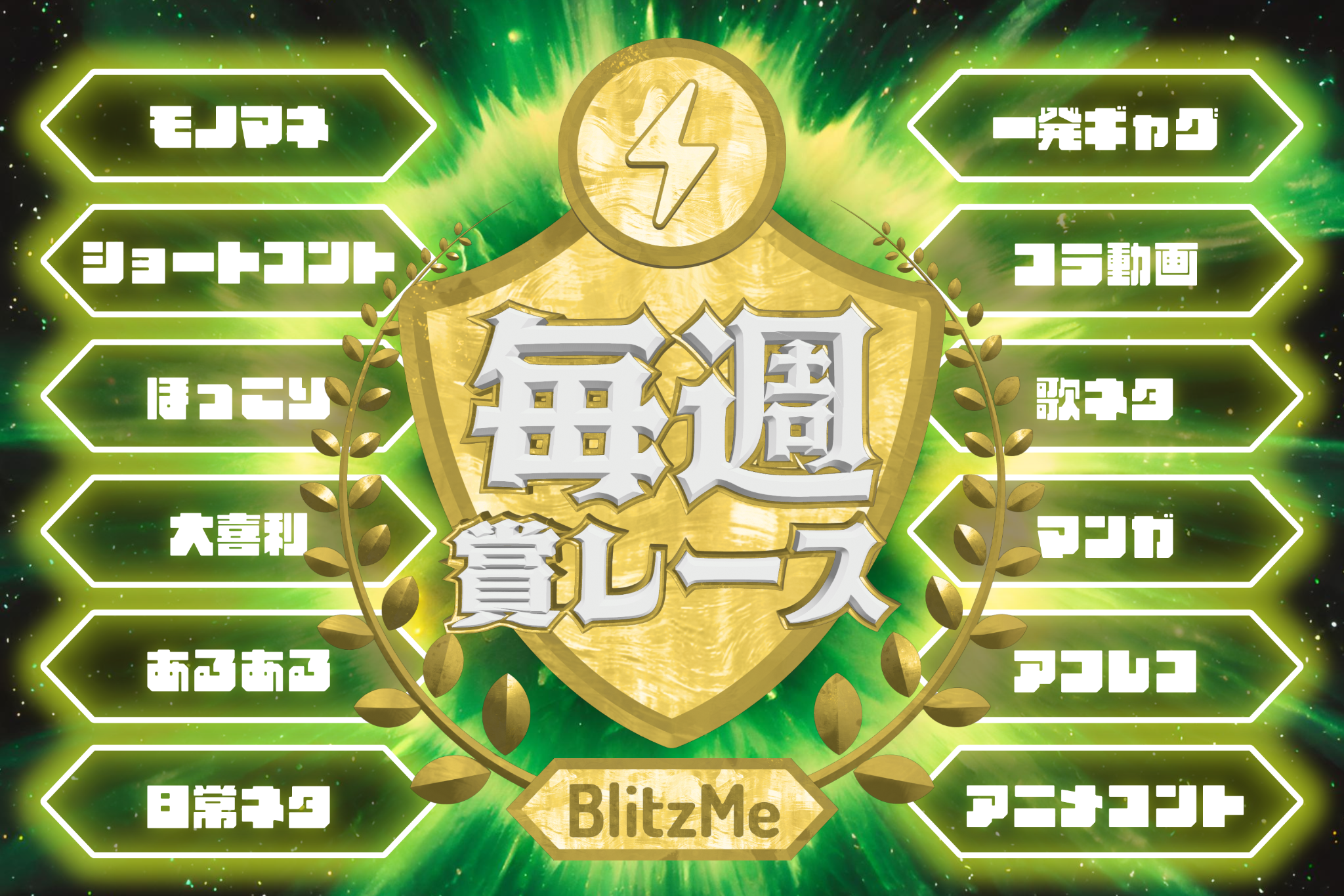 毎週土曜日21:00から翌土曜日の20:59までの7日間に、最もスマホの向こうのユーザーをたくさん笑顔にできた投稿者が優勝する、どなたでも参戦可能な、スマホで完結する次世代の賞レースです。金一封を獲得できるチャンス!