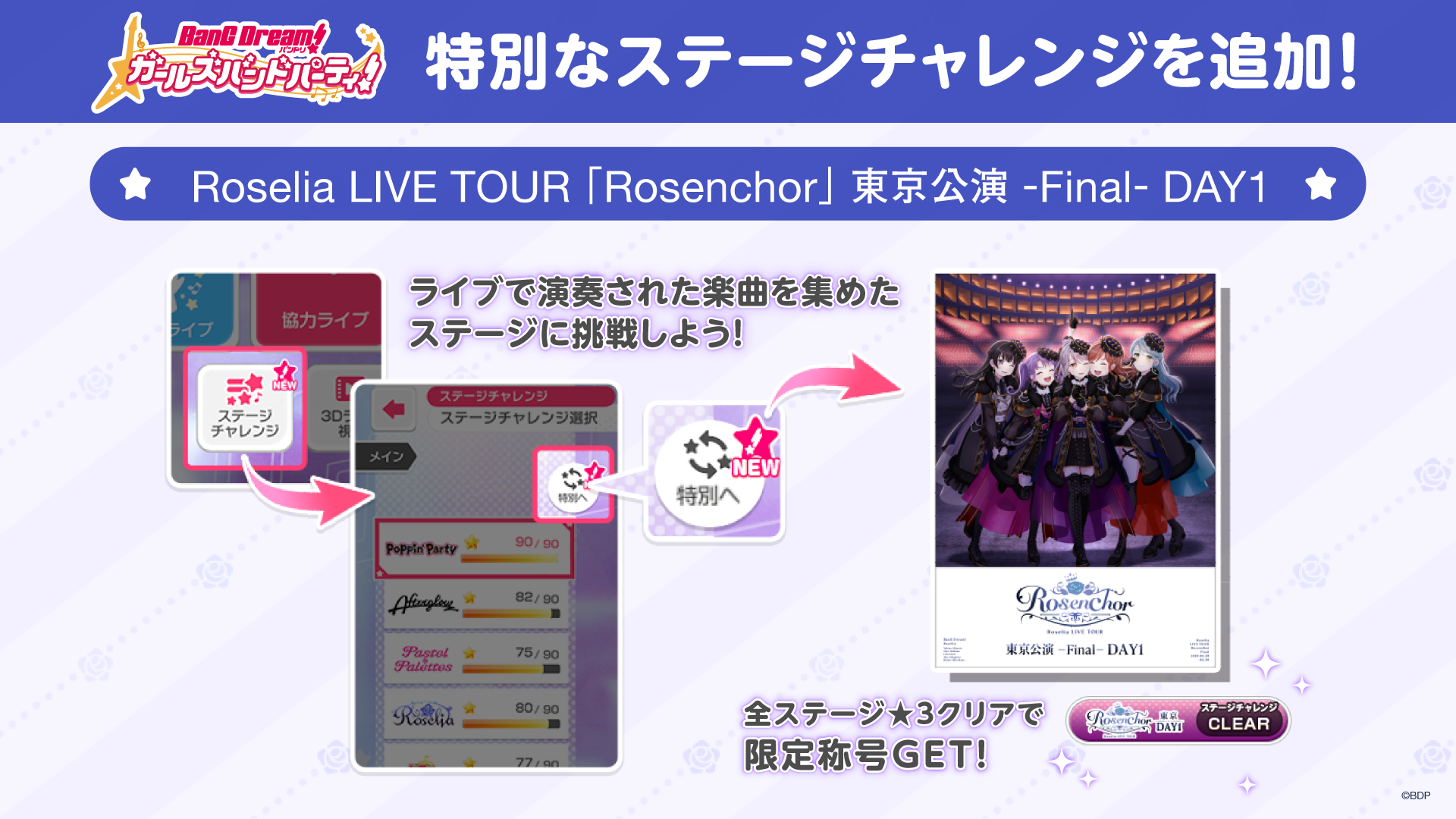 【新情報】「ガルパ」にて、ライブで演奏した楽曲を集めた特別ステージが、ステージチャレンジ機能に追加!