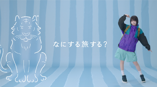 見どころは、あのちゃんらしいゆるい世界観です。CMのキャッチコピー「なにする旅する?」のリズムに合わせたユニークなダンス、新キャラクター「ベル虎」とのシュールな掛け合いをお楽しみください。30秒CMは一部アドリブを採用しており、CMでは珍しい、あのちゃんのマイペースな素のテンションをお楽しみいただけます。特に「古武道」篇で起きるヌンチャクのハプニングは必見です。