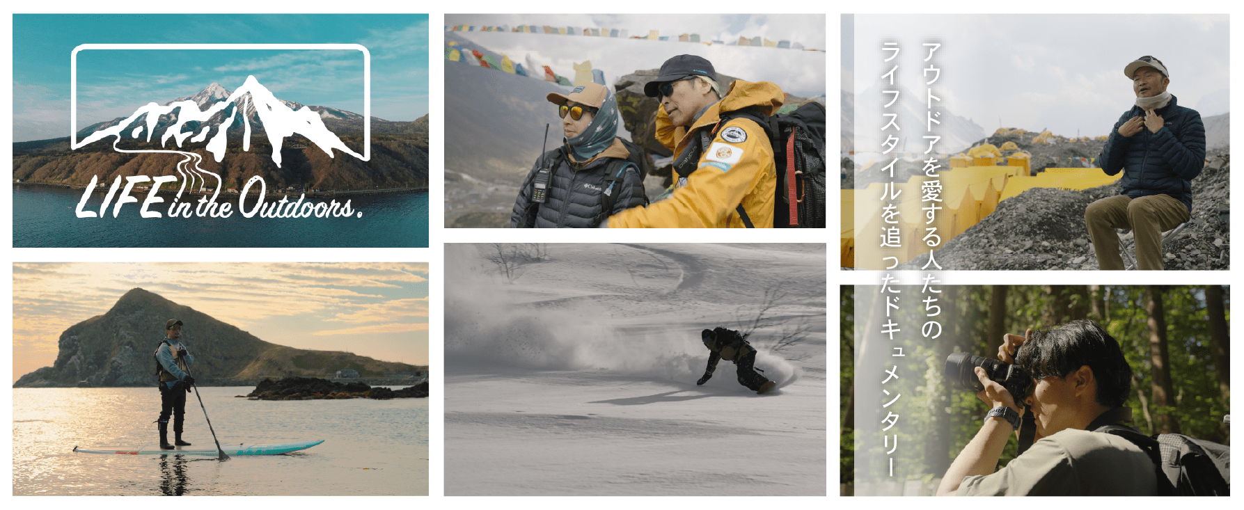 全国各地の美しい自然環境の中で、各々のアウトドアライフを満喫する人々の姿を描き、その魅力を余すところなくお伝えします。また、日本国内にとどまらず、エベレストへの遠征ツアーに挑戦する山岳ガイドや気象予報士のエピソードも予定しており、海外のアウトドアシーンもご覧いただけます。