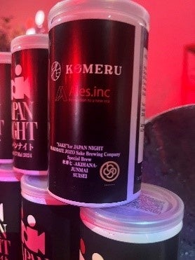 カンヌ国際映画祭の JAPANNIGHTの会場内にて配布された、箱館醸造が提供した缶入りの日本酒。日本酒缶に記載されたQRコードからAlesのフルコトのPR動画にアクセスできる。