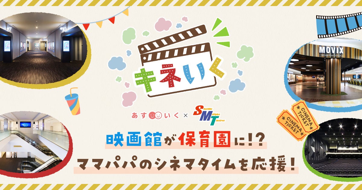 育児中の保護者にとってちょっとハードルが高い「映画館でゆっくり映画を観たい!」を、あすいくが松竹マルチプレックスシアターズと解決。新宿ピカデリーなど3か所で一時保育サービス「キネいく」をスタート!