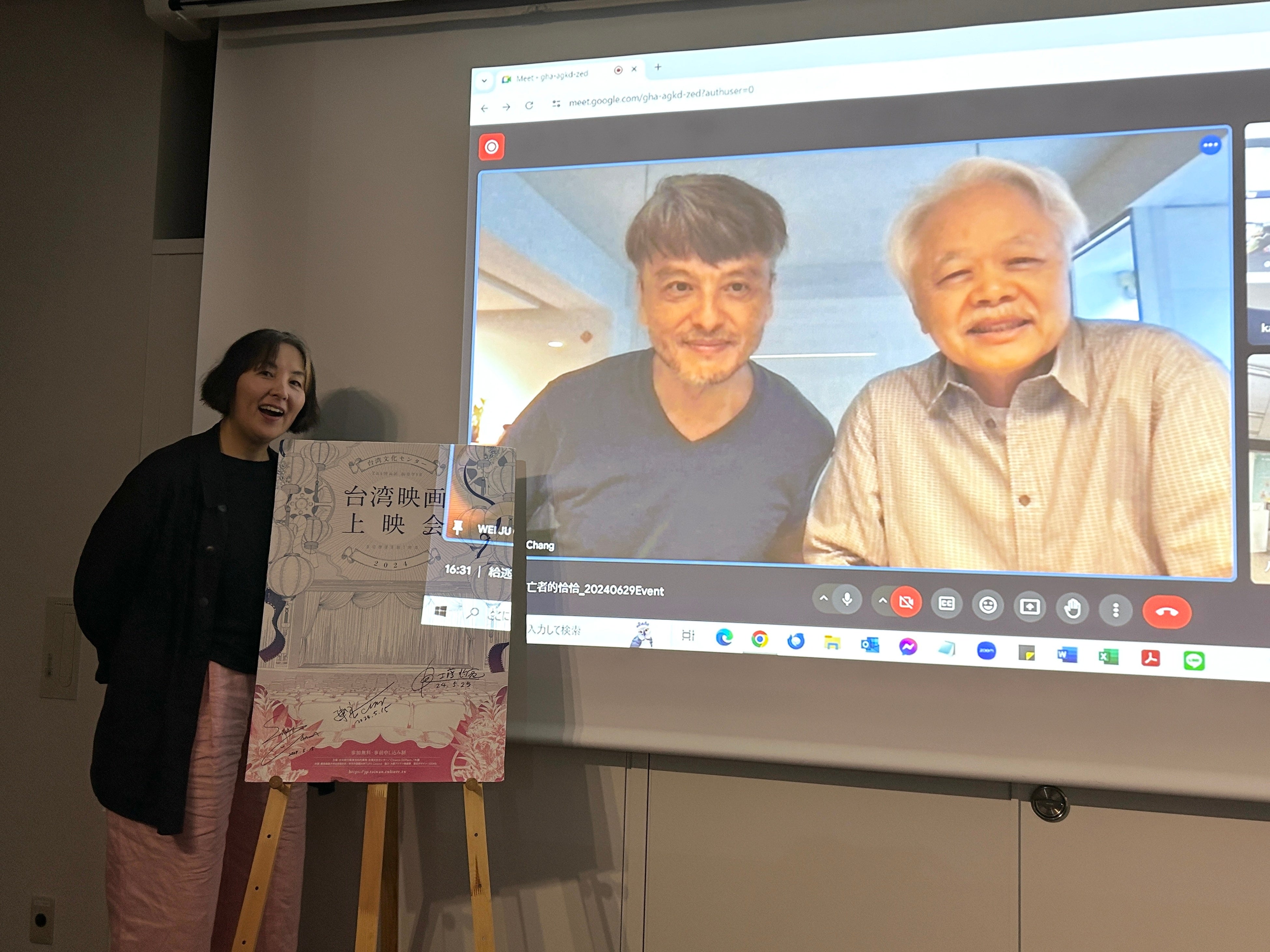 「実は、その主人公を演じてくれたチェン・ホンレンが、今日ここに来ているんです。みなさん、彼に会いたいですか?」と、ワン監督からまさかのサプライズが発表されると会場は驚きとともに大きな歓声に包まれた。すこし柔和な印象になったチェン・ホンレンが画面に登場し、「こんにちは。まさか26年の時を経て、私にとってとても重要な作品である『逃亡者狂騒曲』が日本で上映されることに、とても驚いています。撮影を振り返ると、屋上の手すりを歩いたり、夜にバイクで爆走するシーンがあったり、大変な撮影ばかりでした(笑)。すべてがチャレンジングな経験でしたね。」と、撮影を振り返った。チェンがいまも舞踏団「無垢舞蹈劇場」に所属し、ダンサーとしてヨーロッパや日本でも公演するなど活動を続けていると語ると、「チェンはいまもダンサーとして活躍していますが、ライブハウスのシーンに出演していたバンド「濁水溪公社(LTKcommune)」も、映画出演後にとても人気がでました。ほかにもこの映画に出演してから、売れっ子になったひとは結構いたんですよ。」とワン監督が目を細めた。