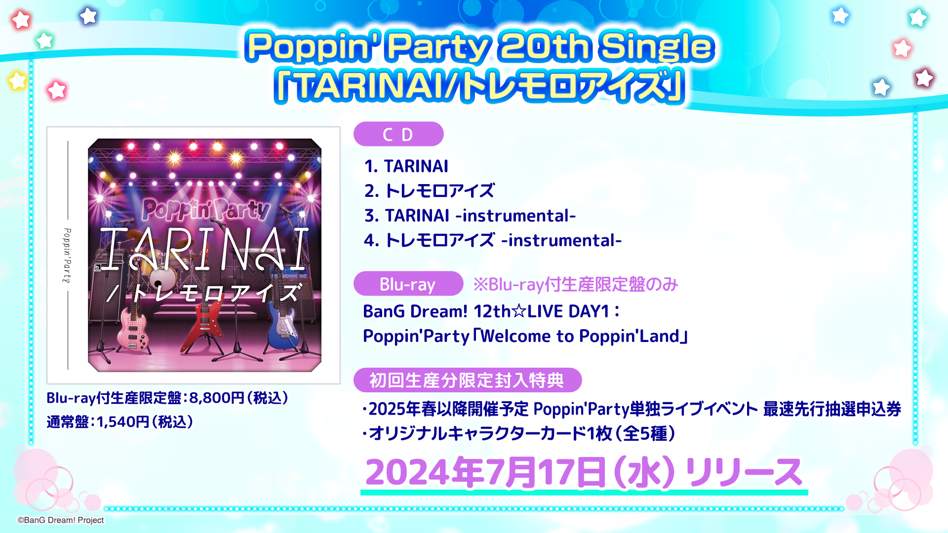 Poppin’Party 20th Single「TARINAI/トレモロアイズ」