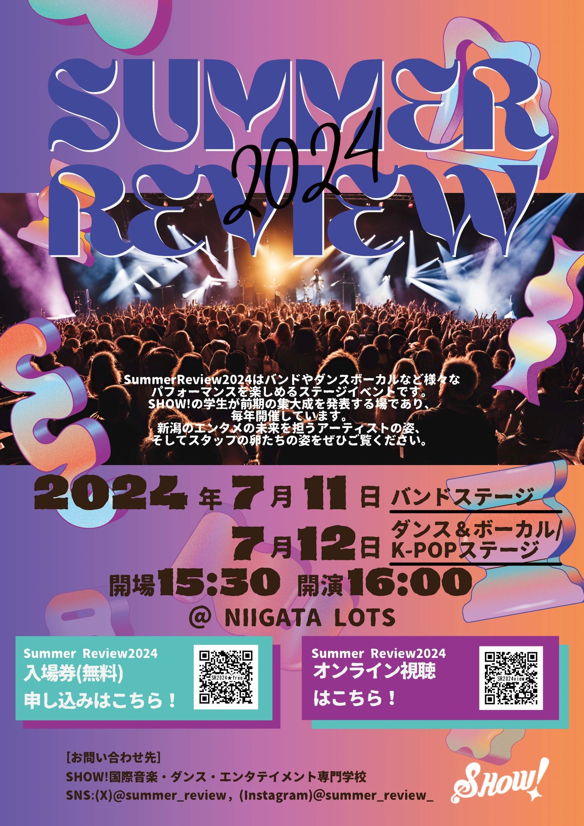 Summer Reviewはエンタテイメントのプロを志す学生たちの晴れ舞台でもあり、デビューやプロ活動に向けたプレゼンテーションのステージでもあります。ステージも舞台裏も全てがリアルな実践でスキルを積み、新潟から世界のエンタテイメント業界を目指し活躍してくれることを願います。