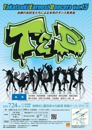 令和6年7月24日(水曜日)、高槻城公園芸術文化劇場で高槻市内の高校を中心とした全20校のダンス部メンバーによるハイレベルなパフォーマンスをお届けする高校生ダンス大会TED(Takatsuki Earnest Dancers)が開催されます。