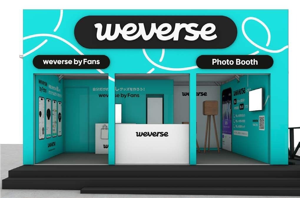 「Weverse体験ブース」は、HYBE発の「推し活ワンストップアプリ」で、様々なアーティストが参加するWeverse(ウィバース)を無料で楽しめる体験型ブースです。