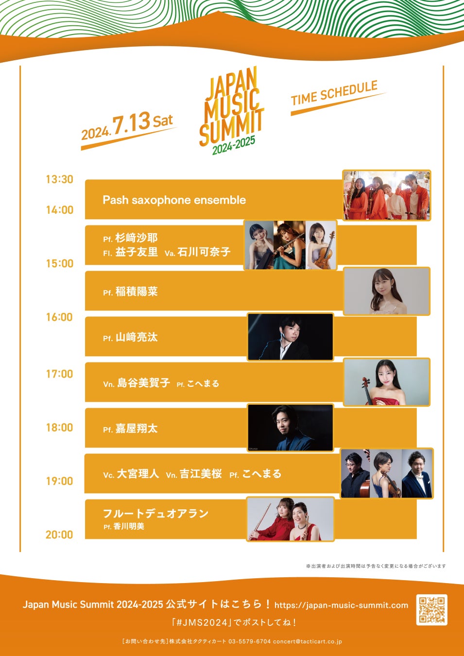 出演予定アーティスト:Pash saxophone ensemble、杉﨑沙耶、益子友里、石川可奈子、稲積陽菜、山﨑亮汰、島谷美賀子、嘉屋翔太、大宮理人、吉江美桜、こへまる、フルートデュオアラン、香川明美