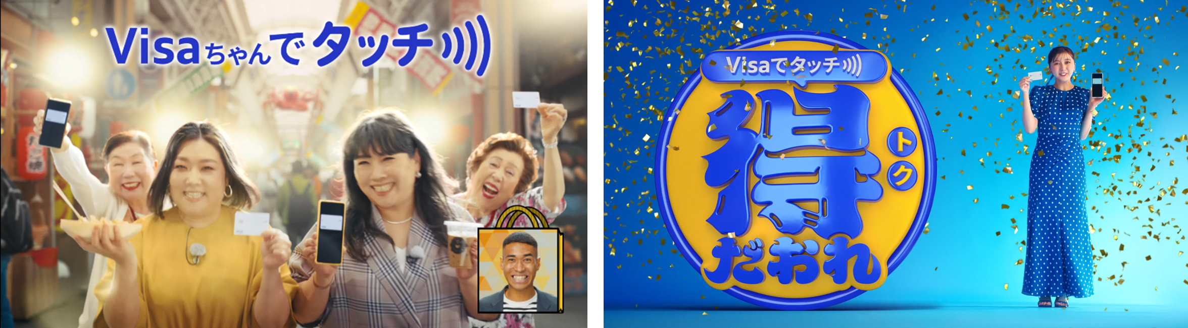 「これかーー!!」と疑問が解決した、海原やすよ ともこさん。「Visaちゃんでターッチ」と、2人で声を合わせながら、おばちゃん達と共に商店街を行進します。最後に、大阪限定で実施されているお得なキャッシュバックキャンペーンをご紹介します。