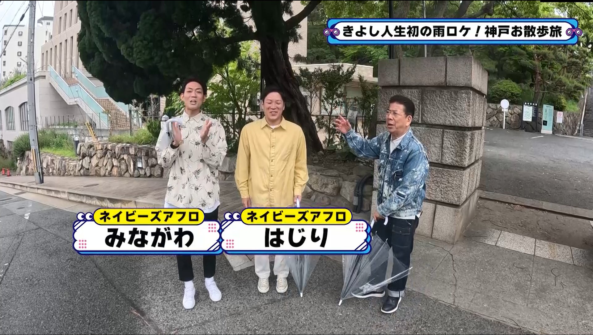 番組は神戸大学のキャンパスの前からスタート。ネイビーズアフロは2人ともこの大学の出身で、学生時代を過ごした界隈をきよしに案内すると意気込みます。