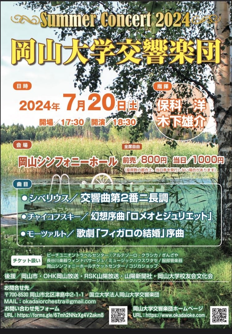 国立大学法人岡山大学(本部:岡山市北区、学長:那須保友)の岡山大学交響楽団では、2024年7月20日(土)に、岡山シンフォニーホールにおいて「Summer Concert 2024」を開催します。