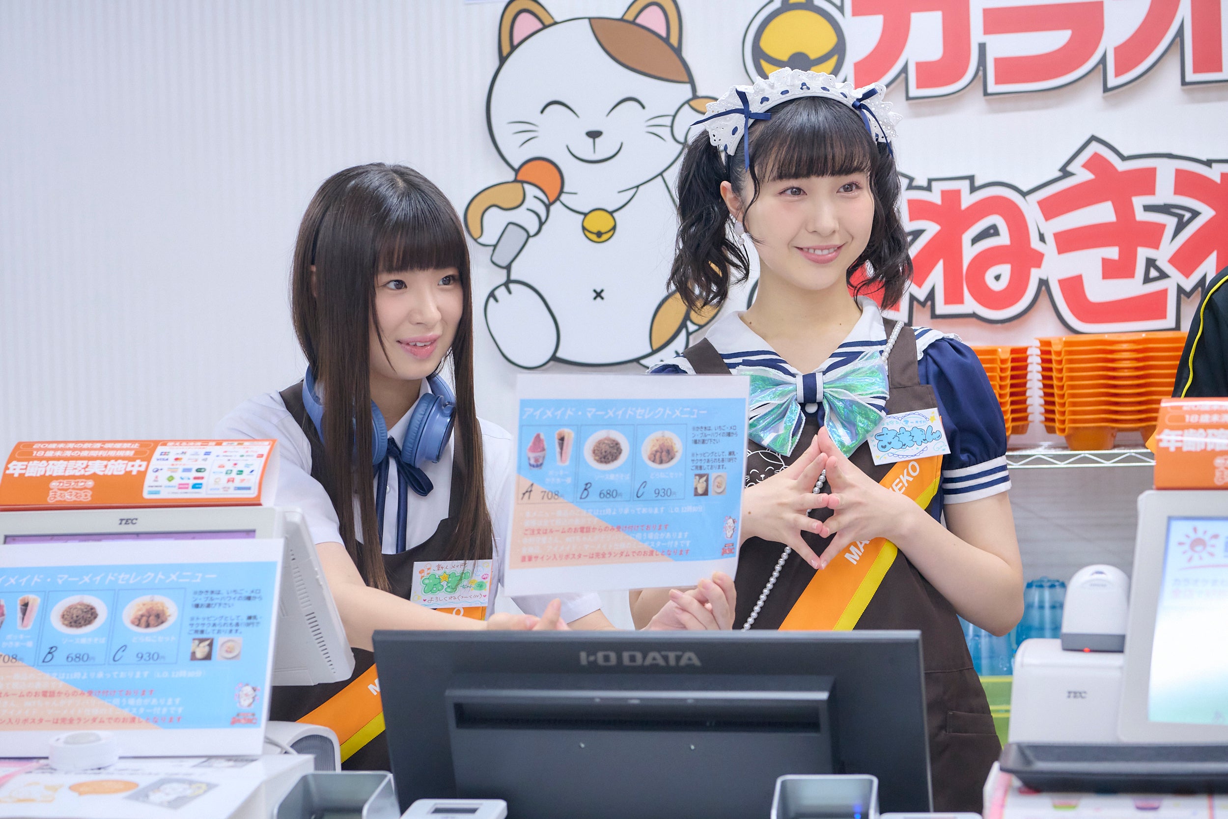 女優の中村守里(21)とアーティスト・ラッパーの#KTちゃん(19)が、7月15日(月)、tvkドラマ「アイメイド・マーメイド」のエンディングテーマ発表イベントとしてカラオケまねきねこ関内店で1日バイト体験&トークイベントを行った。