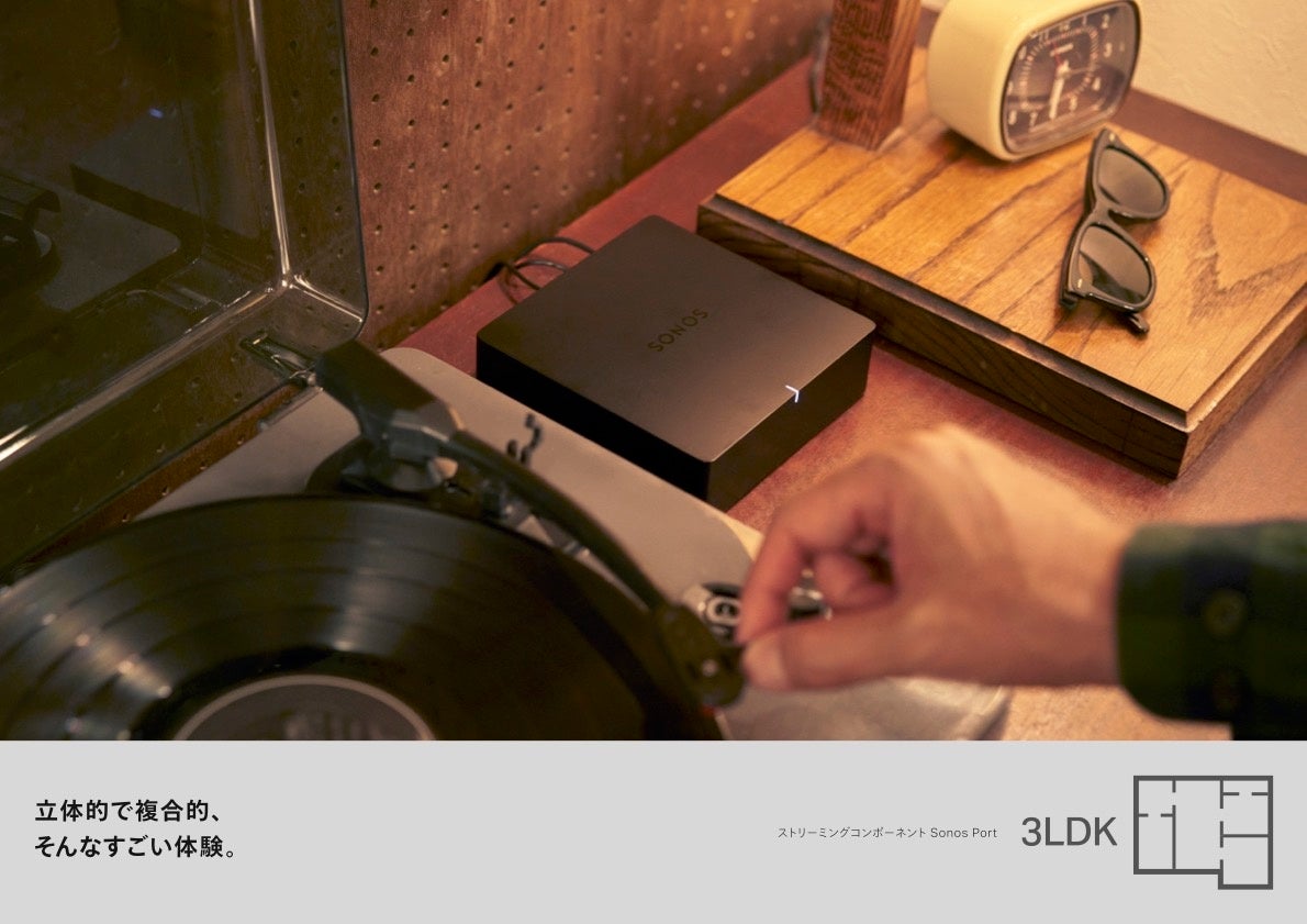 • Sonos製品のある暮らし:ストリーミング再生する「Sonos Port」を活用し、お気に入りのレコードをターンテーブルで流すことも。部屋中にレコードの耳馴染む音楽が流れ、仕事終わりに晩酌を嗜む時間がより特別なものに。
