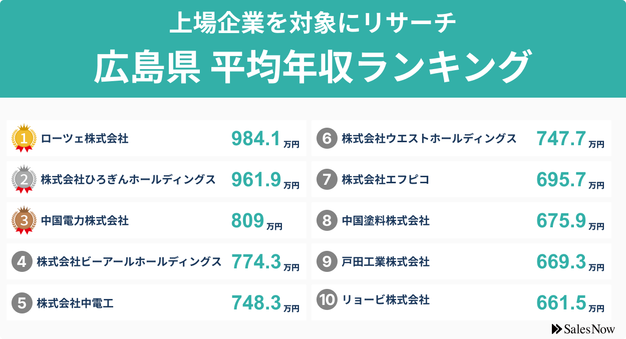 第6位以降は株式会社ウエストホールディングス、株式会社エフピコ、中国塗料株式会社、戸田工業株式会社、リョービ株式会社と続きます。