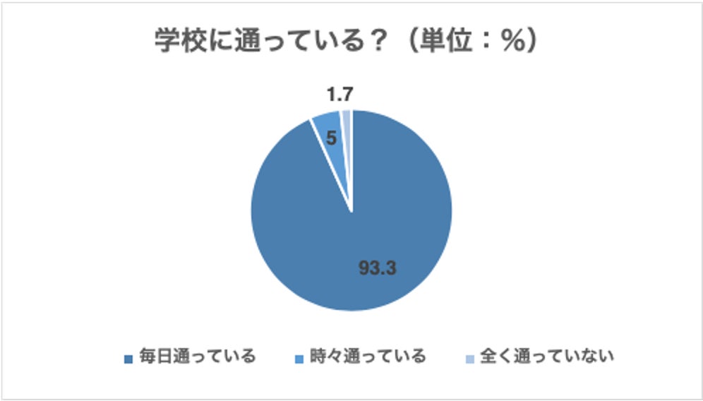 「ギャル」という言葉を聞くと、学校に行かないイメージを持たれることがありますが、小学生ギャルのママ100人に対して行った「最新のギャル事情アンケート(KOGYARU編集部調べ)」によると、毎日学校に通っていると回答した人は93.3%,時々通っていると回答した人は5%,全く通っていないと回答した人は1.7%でした。また、同アンケートでは、学校から髪の毛の色について指摘されると回答した人は約30%で、指摘されないと回答した人は約70%を占めていました。時代の変化もあり、現代の小学生ギャルは毎日真面目に学校に通っており、学業とギャルを両立させていることがアンケート調査の結果明らかになりました。