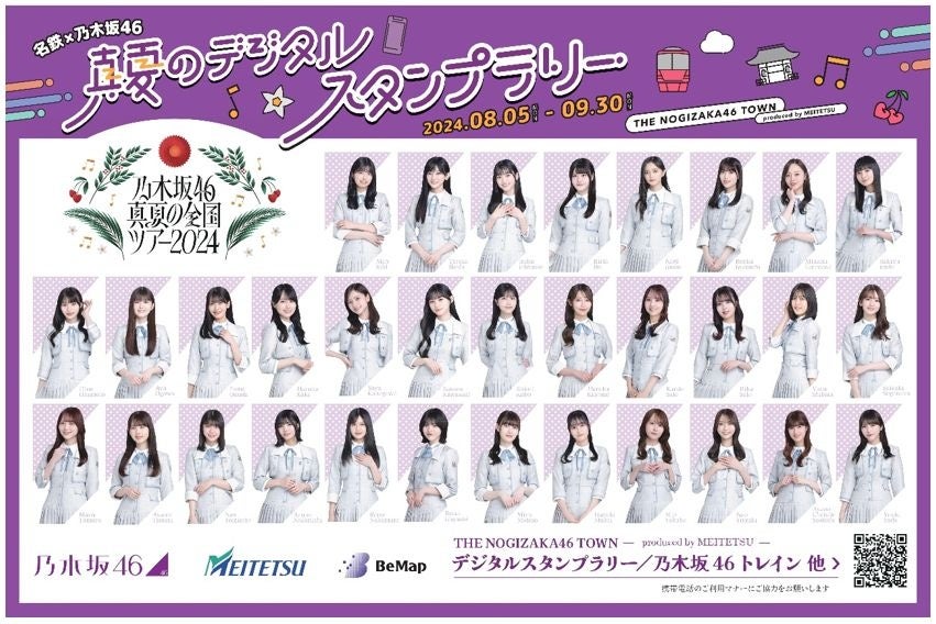 「THE NOGIZAKA46 TOWN produced by MEITETSU」と題し展開される本施策では、名鉄沿線を巡る「真夏のデジタルスタンプラリー」の開催や、メンバーが車内広告をジャックした「乃木坂46トレイン」を運行する等、乃木坂46と名鉄沿線を楽しめるさまざまな企画を実施いたします。
