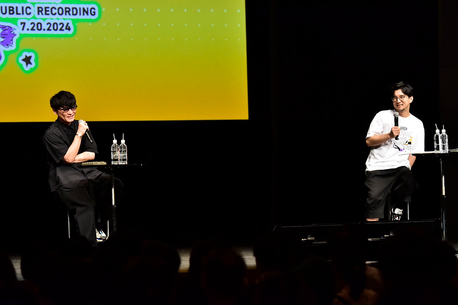 今回、ゲストとして出演したサカナクション・山口一郎は以前から鉄塔と交友がありましたが、イベントとしては2人の初コラボが実現する形となりました。今回のイベントは会場参加以外に、文化放送の配信プラットフォーム「QloveR」にて生配信を実施(アーカイブ有り:配信終了後~7月27日(土)23:50まで)。また、昼の部の公開収録パートの模様は7月25日(木)の『三人称・鉄塔 ひとりのよる』にてオンエアします。