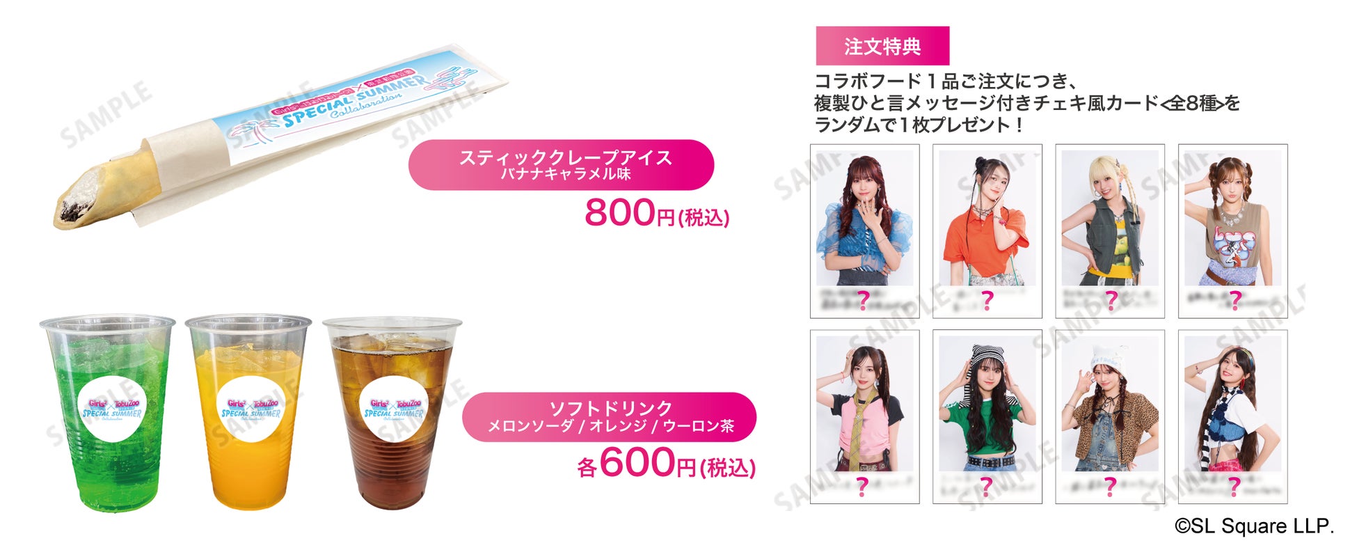 また、メンバーが制作に携わったオリジナルコラボグッズも誕生。この夏に活躍間違いなしの保冷トートバッグと、本コラボレーション限定の撮りおろしビジュアルを用いたアクリルキーホルダーを販売します。ほかにもGirls²メンバーの等身大パネルと写真を撮ることができるスペシャルフォトブースの設置や、コラボフードの販売、本コラボのために収録した撮り下ろし音声によるスペシャルなプール場内アナウンスの放送など、コンテンツ盛りだくさんのコラボレーションとなります。