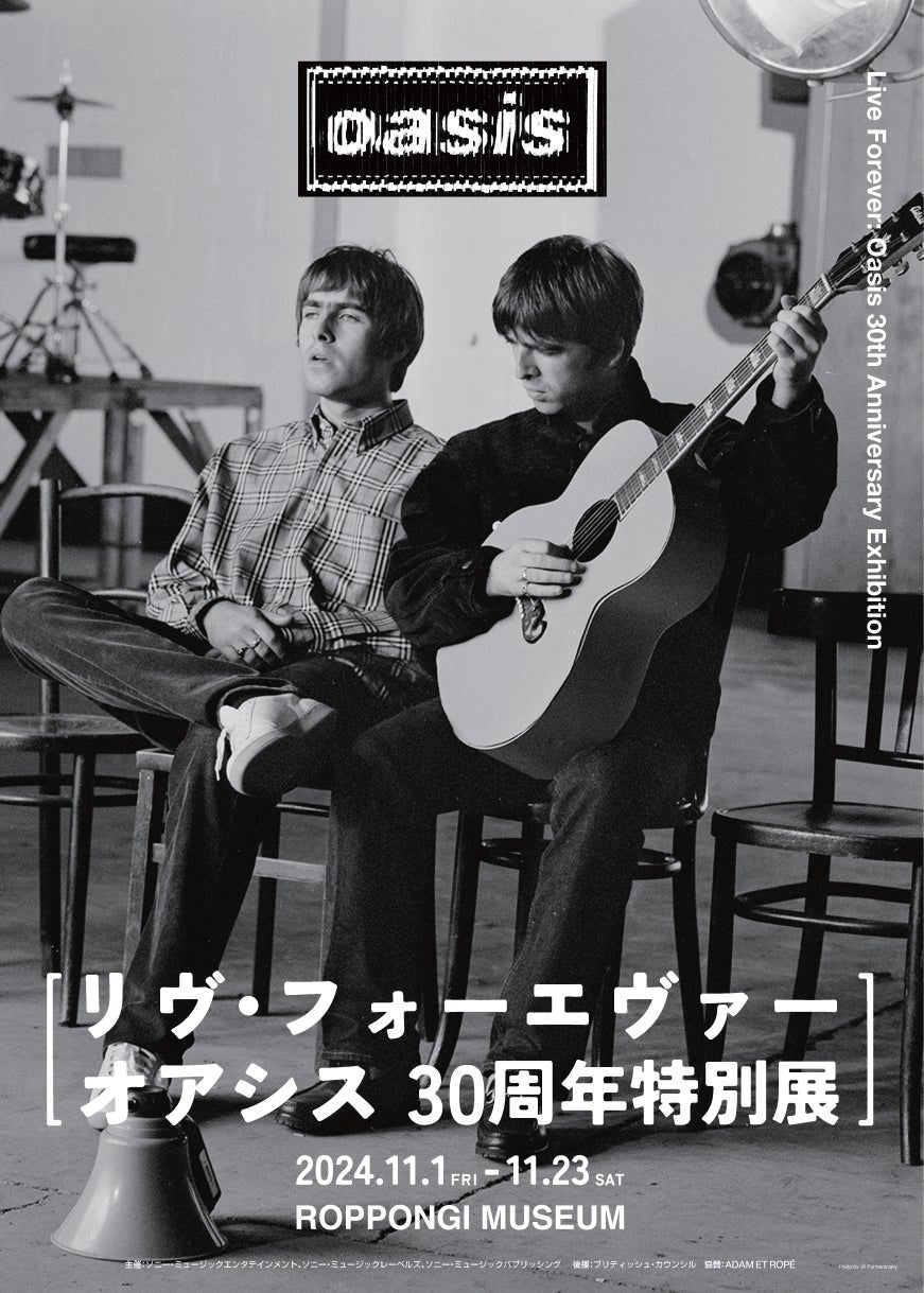 2024年はデビュー・アルバム 『オアシス』 のリリースから、そして初来日公演からも30年というビッグ・アニバーサリー・イヤー。これを記念して、改めて彼らの残した<永遠に色あせない>楽曲の魅力、そして唯一無二なその存在を多角的な視点で紐解く壮大なエキシビション 『Live Forever:Oasis 30周年特別展』 の開催が決定。11月1日(金)から六本木ミュージアムで開催される。2014年、わずか4日間という短期開催ながら1万人を動員したオアシス日本初の展覧会 『CHASING THE SUN:OASIS 1993 -1997 あなたにとってのオアシスとは』 から10年ぶりとなる本展では、彼らの愛用した楽器や直筆の歌詞の走り書き、バンド初期のアイコニックなオリジナル・ポスター群など、前回は紹介しきれなかった貴重なアイテムも多数展示。故郷マンチェスターの文化的背景をたどり、世代を超えるロックンロール・スーパースターがいかにして誕生したのかを探ってゆく。アルバムのアートワークを再現したフォト・スポット、現在では体感できない彼らのライヴを体感できるスペースなど、オアシスという稀有なバンドの魅力をその名曲とともに深掘りできる内容になる予定だ。