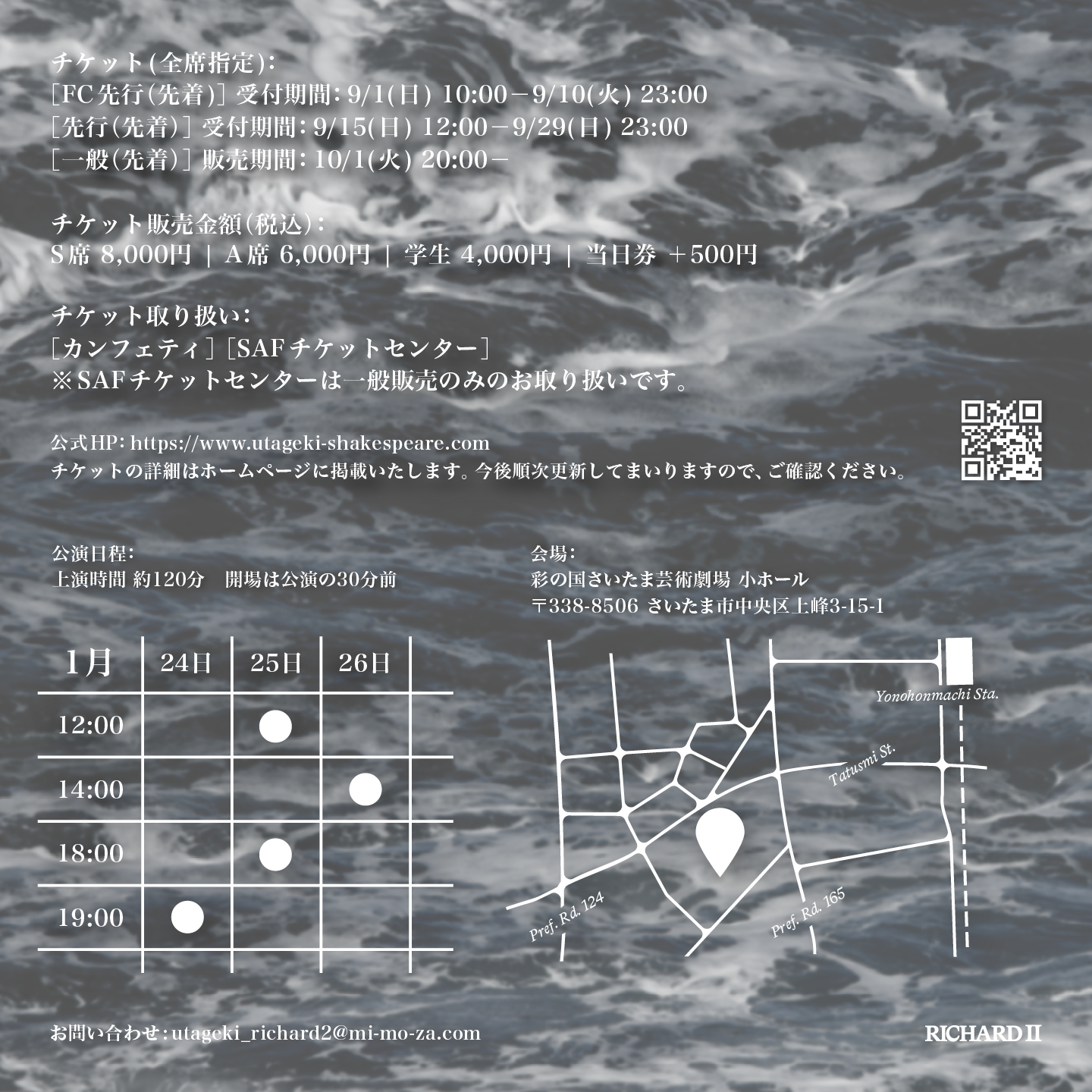 public history主催、歌劇『リチャード二世』が2025年1月24日(金)〜26日(日)に彩の国さいたま 芸術劇場 小ホール(さいたま市 中央区 上峰3 -1 5 -1)にて上演されます。 チケットはカンフェティ(運営:ロングランプランニング株式会社、東京都新宿区、代表取締役:榑松 大剛)にて発売予定です。