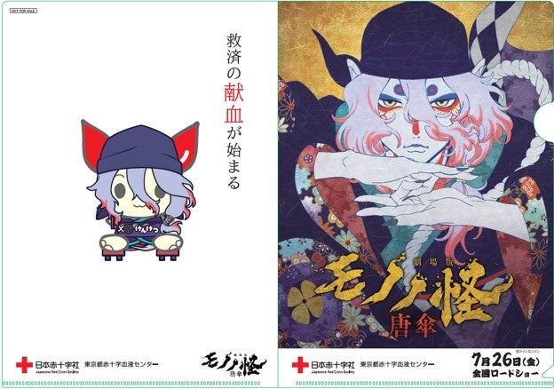 東京都赤十字血液センターでは、今夏、約17年ぶりの新作『劇場版モノノ怪 唐傘』が公開されることを受け、7月26日(映画公開日)から9月30日までの期間中、東京都内の献血会場にて献血にご協力いただき、献血Web会員サービス「ラブラッド」への登録が完了している方でキャンペーンプレゼントをご希望の方には、映画のメインビジュアルと主人公・薬売りをイメージしたオリジナルけんけつちゃんがデザインされたB5クリアファイルを、先着5,000名様にプレゼントします。