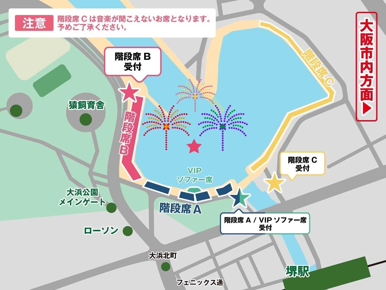 階段席Cは音楽が聞こえない席となりますので、予めご了承ください。