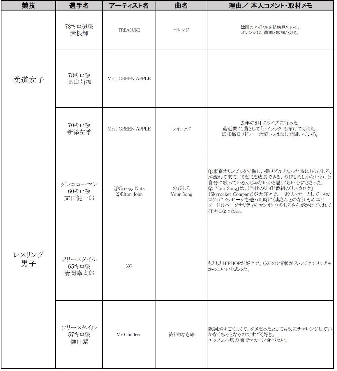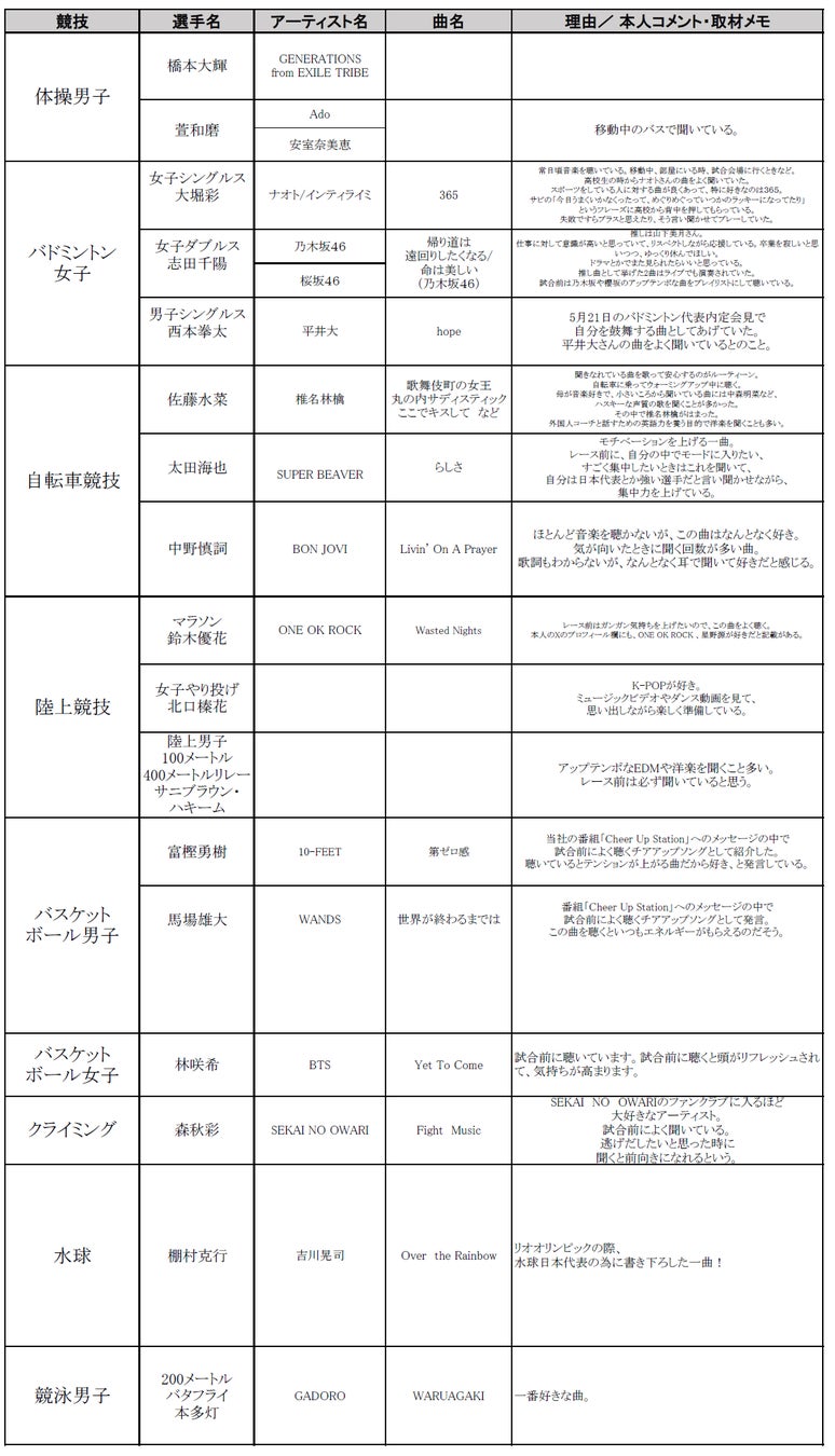 富樫勇樹、北口榛花、文田健一郎ら45選手が試合前に聴く曲をオンエア!