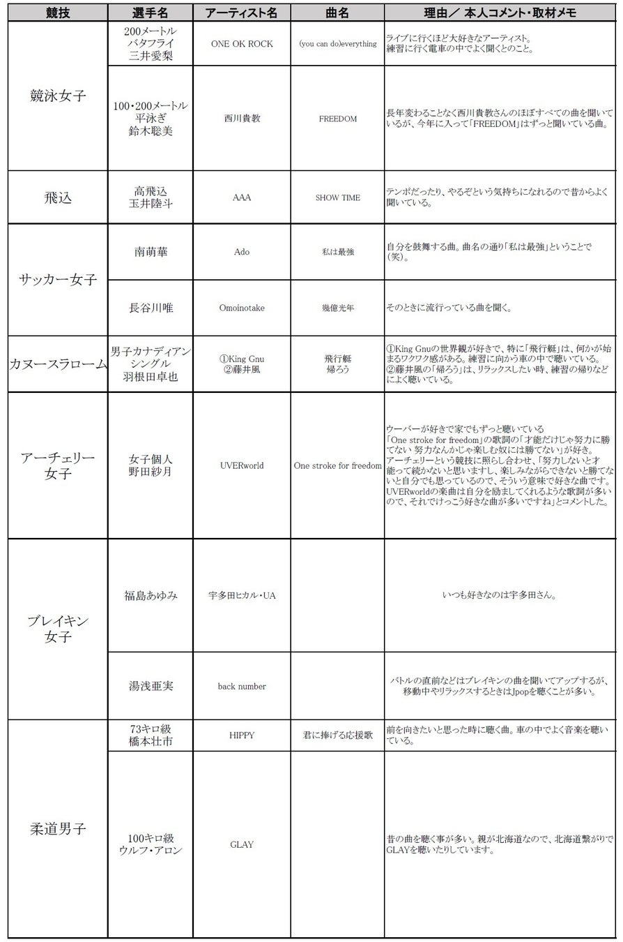 バスケットボール男子代表でキャプテンを務める富樫勇樹、陸上女子やり投げの北口榛花、レスリング男子の文田健一郎など、45選手に取材した『Cheer up SONGS』を随時、オンエアします。