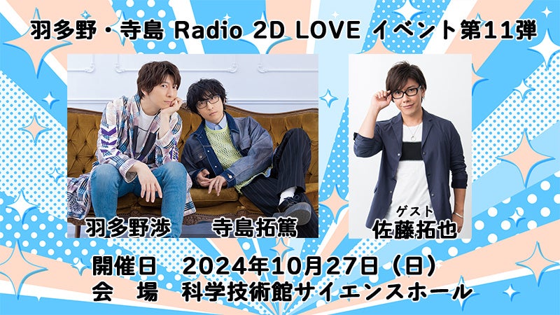 羽多野渉さんと寺島拓篤さんによる番組『2D LOVE』が2024年10月27日(日)にイベント開催。イベント初のゲストは佐藤拓也さん! チケット抽選受付中!!