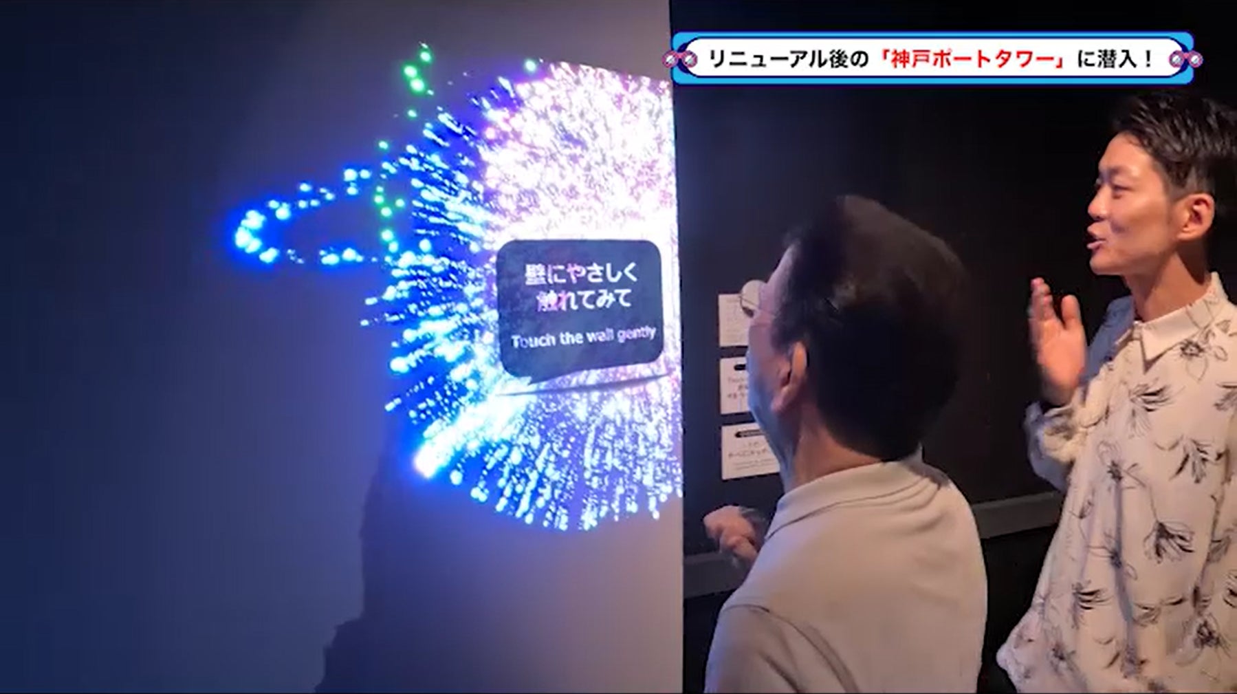 モノクロの壁に触れると、光が追いかけてくるというアートを見たにきよしは「なんという頭のいい人がいるんでしょう」と感心。また、壁に光の花火が打ちあがるという仕掛けには、「これは放送をみんなが見るで~!」と瞳孔全開で大興奮していました。