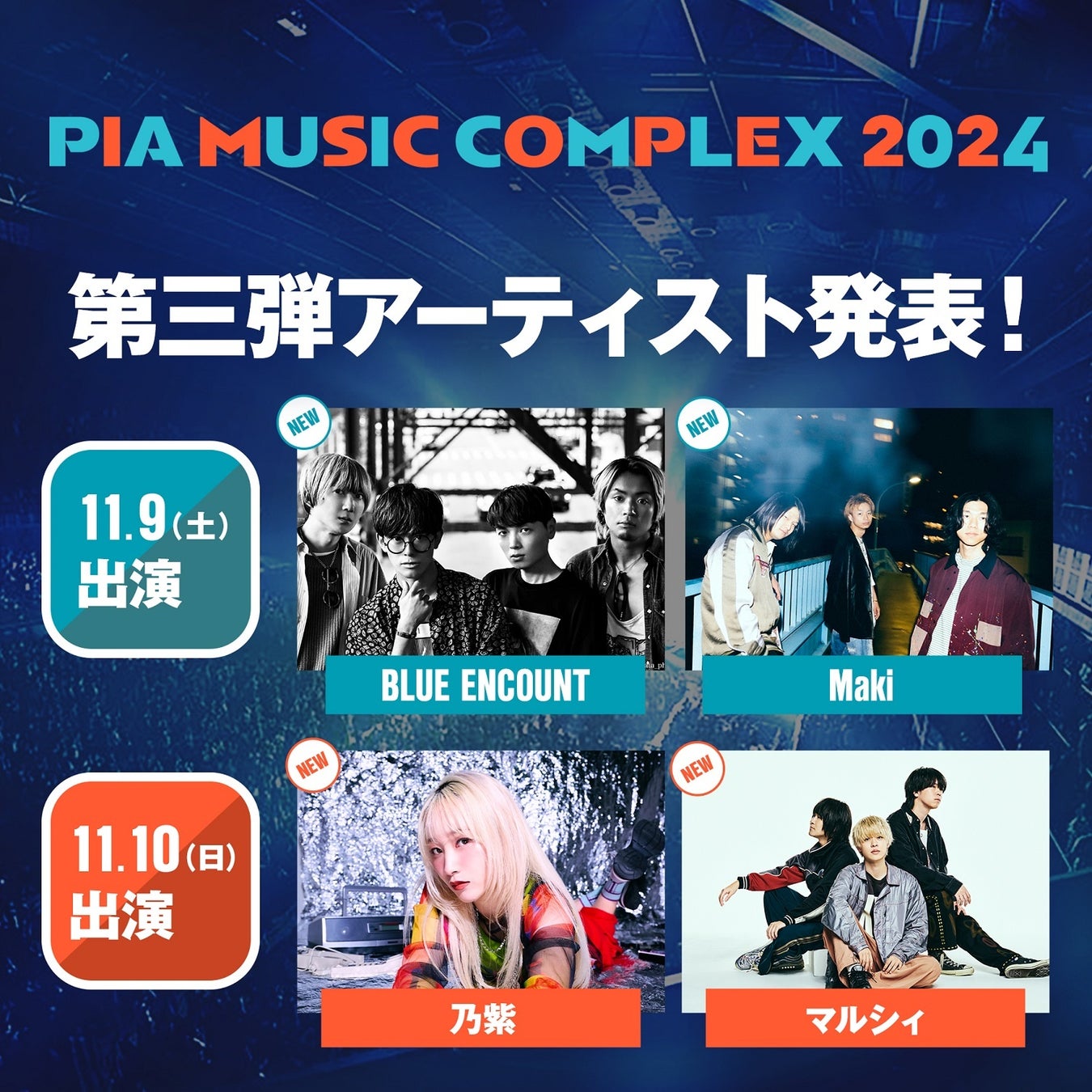 2024年11月9日(土)・10日(日)、横浜・ぴあアリーナMMにて「PIA MUSIC COMPLEX 2024」を開催。本日、第3弾出演アーティストを発表いたします。
