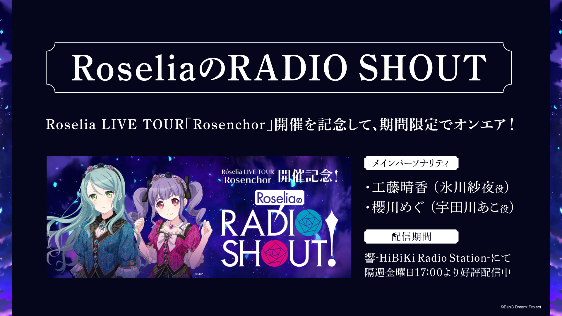Roselia LIVE TOUR「Rosenchor」の開催を記念して、「RoseliaのRADIO SHOUT!」を期間限定でオンエアしています。