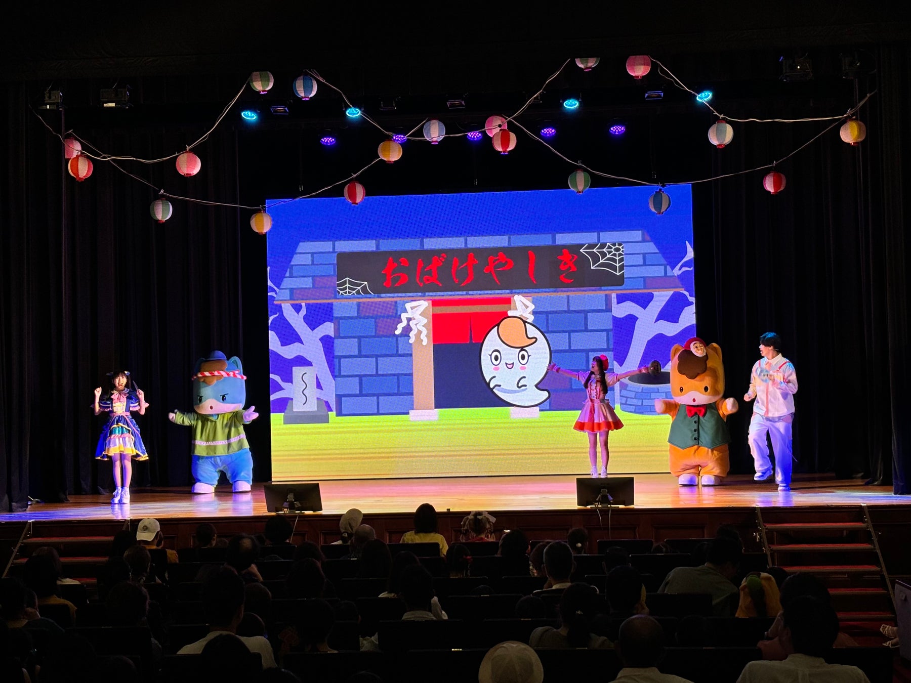 他にもステージの映像を見ながら一緒におばけやしきを巡り、出てきたおばけを入場時に配布されたうちわを使ってぐんまちゃん等と一緒に吹き飛ばしたり、ぐんまちゃんと射的をしたりと、前回のコンサートから引き続き、映像を見ながら参加できるステージとなった。