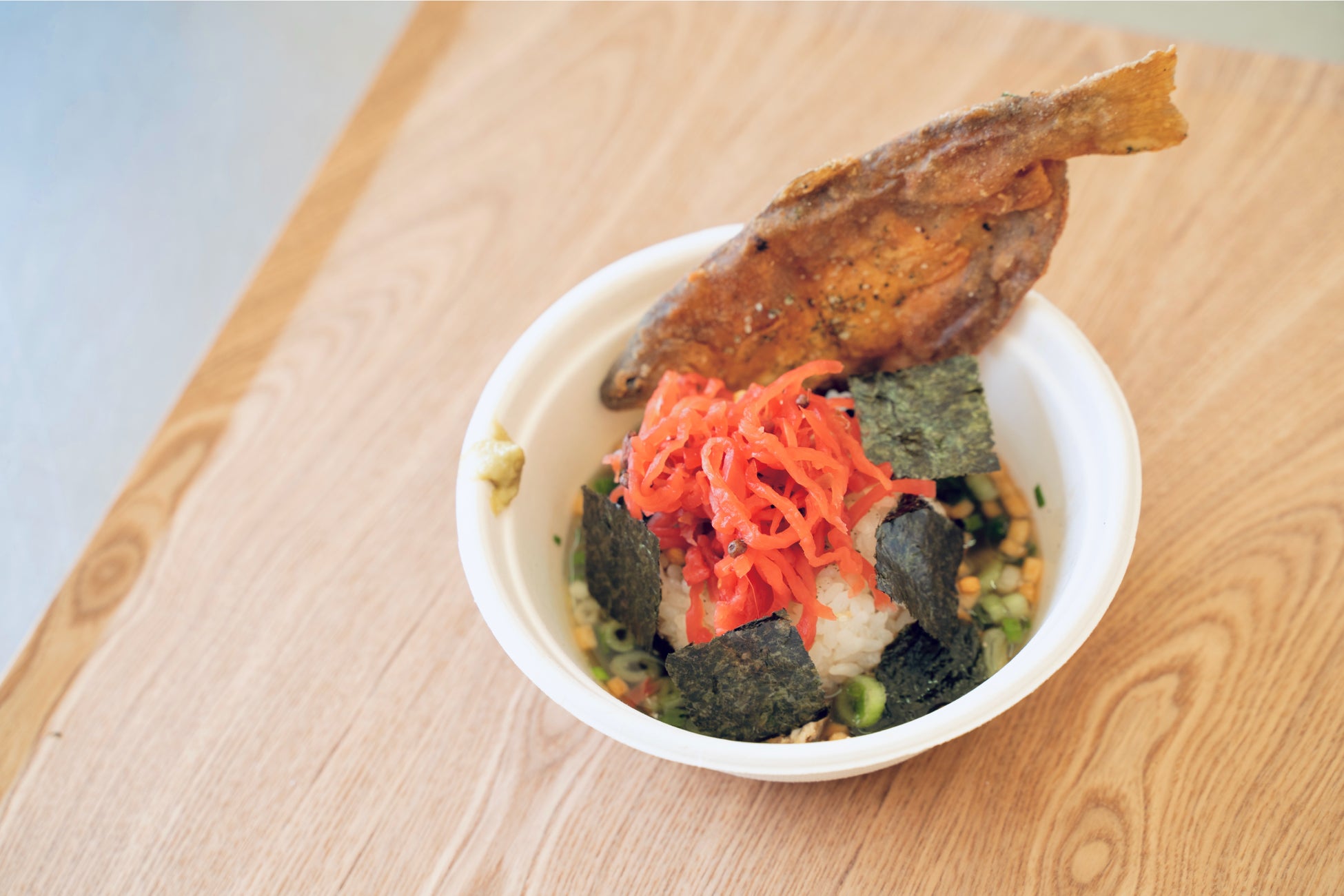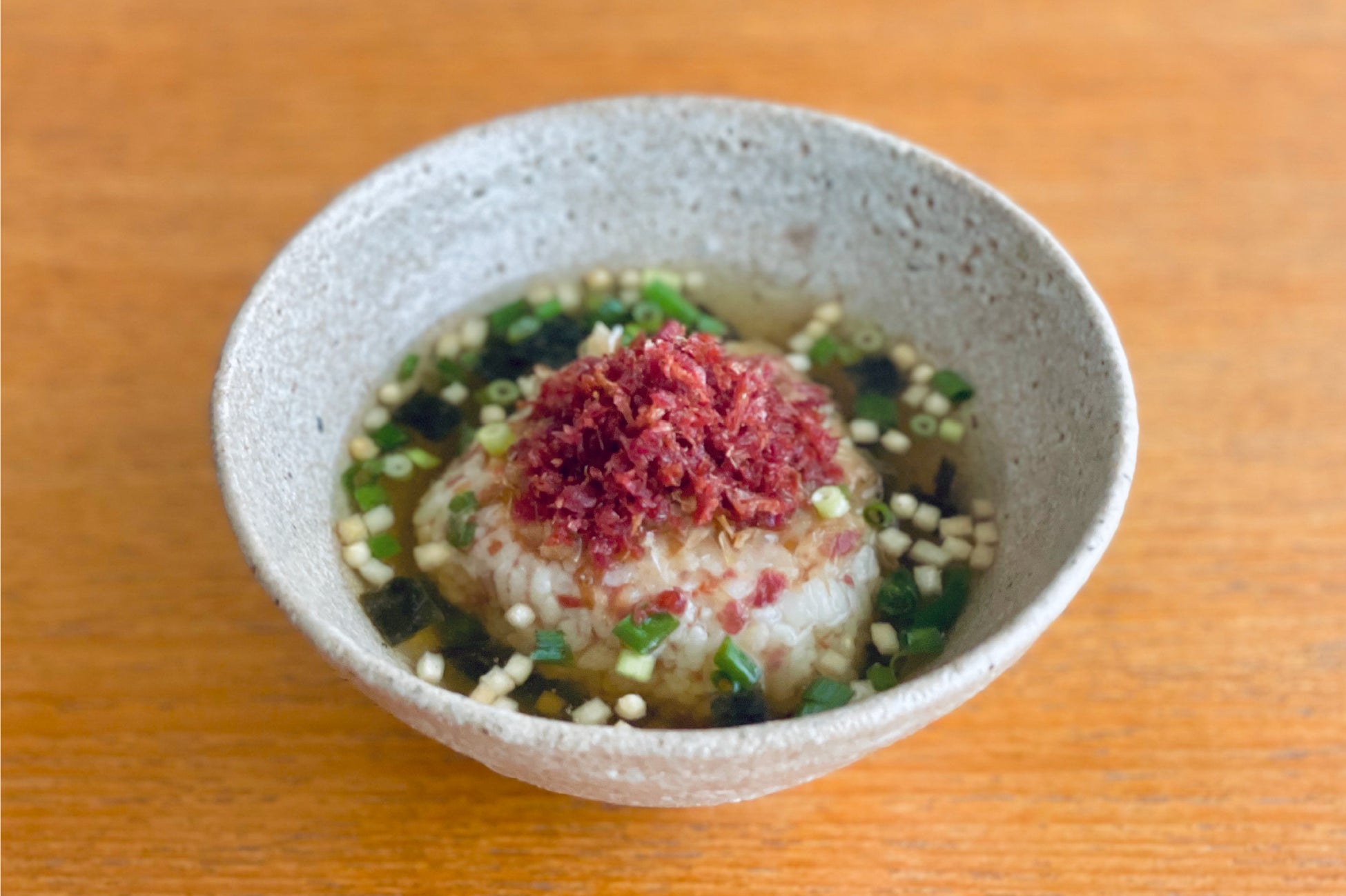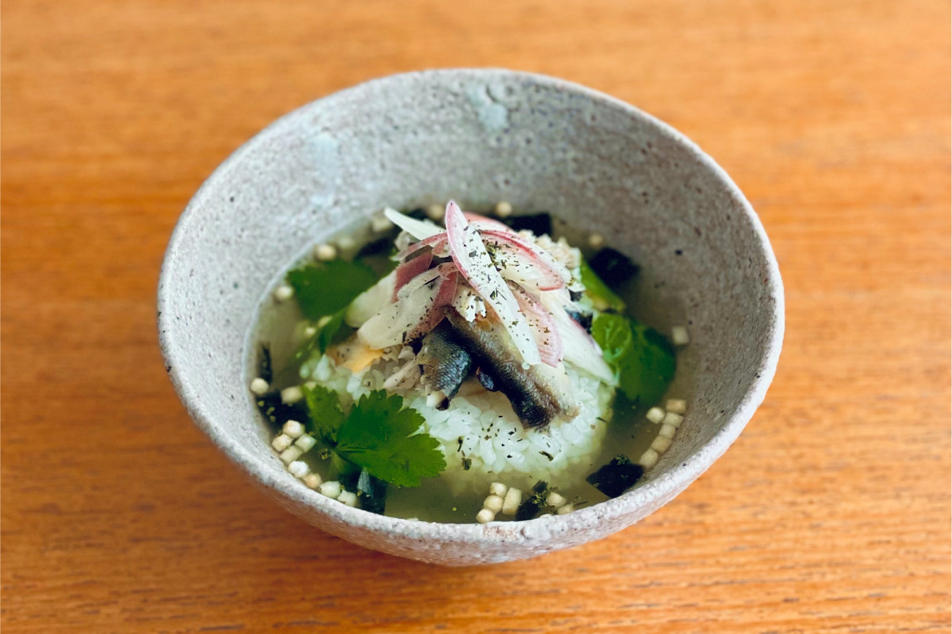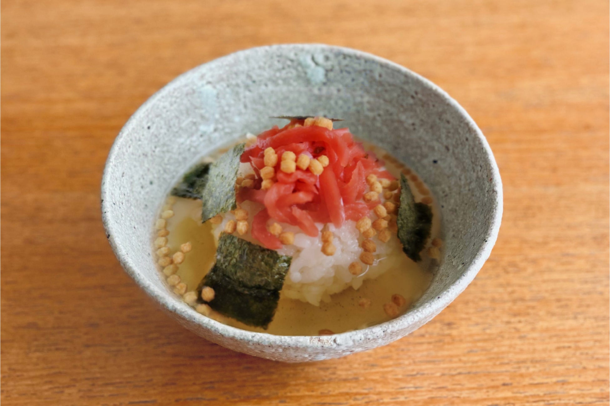 店名は「山茶漬小屋」。同郷の米ブランド「山仙」とタッグを組み、こだわりのお茶とお米を使ったお茶漬けを販売しました。両ブランドとも山間部で農業を営んでいること、さらには、自然を守る取り組みをしていることから、豊かな山を想起させる“鮮やかな緑のお茶”や“こんもりと盛られたお米”が特徴のお茶漬けを考案し、「山茶漬け」と名づけました。