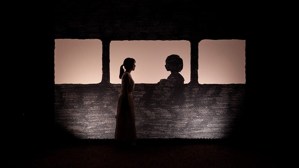 小説「ユーレイ」の持つ世界観、そして主人公、海末の心の揺れや成長からボーカルのikuraがどのようにインスピレーションを受け、声に魂を宿していくのか。YOASOBIの歌を体感できる部屋です。そっとシルエットに近づいて、耳を傾けてください。