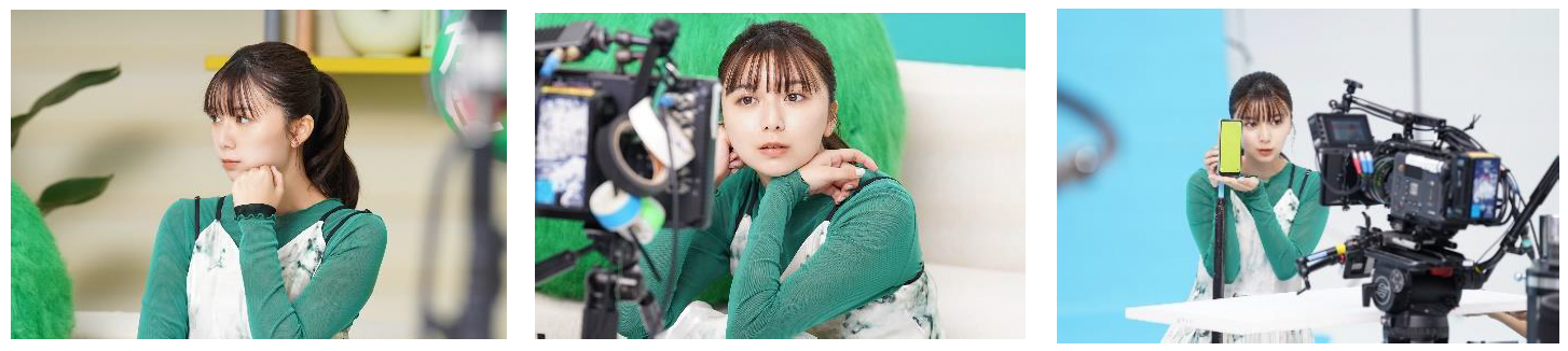 撮影当日、上白石さんはSUUMOカラーの緑のカットソーに白のキャミワンピースというかわいらしい衣装に、ポニーテール姿で撮影に臨まれました。上白石さんは現場に登場した時から、20代とは思えぬ落ち着いた空気をまとい、圧巻のオーラで会場のスタッフを魅了。監督からの指示に笑顔で応えながら、真摯(しんし)に取り組む姿が印象的でした。