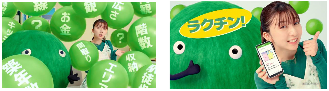 ソファで何やらお悩みの様子の上白石さん。その周りには「間取り」や「お金」など、住まい探しで迷いがちな項目の風船が浮かんでいます。そんな“住まい探しの迷い”はどんどん増え、上白石さんが大量の風船に包まれます。「住まい探し、何から始めればいいか、分からな~い!」と思いを吐露すると、突然画面が切り替わり、大きな『SUUMO』の文字が登場。さまざまな間取り図が複数の不動産会社に吸い込まれ、さらにそれらがまるっと『SUUMO』の中へ。「SUUMOなら、たくさんある物件をいろいろな検索方法でまとめて一気に探せる!」というメッセージをグラフィカルで分かりやすく表現しています。『SUUMO』の特徴を知った上白石さんの「ラクチン!」と満足感たっぷりな表情にもご注目ください。