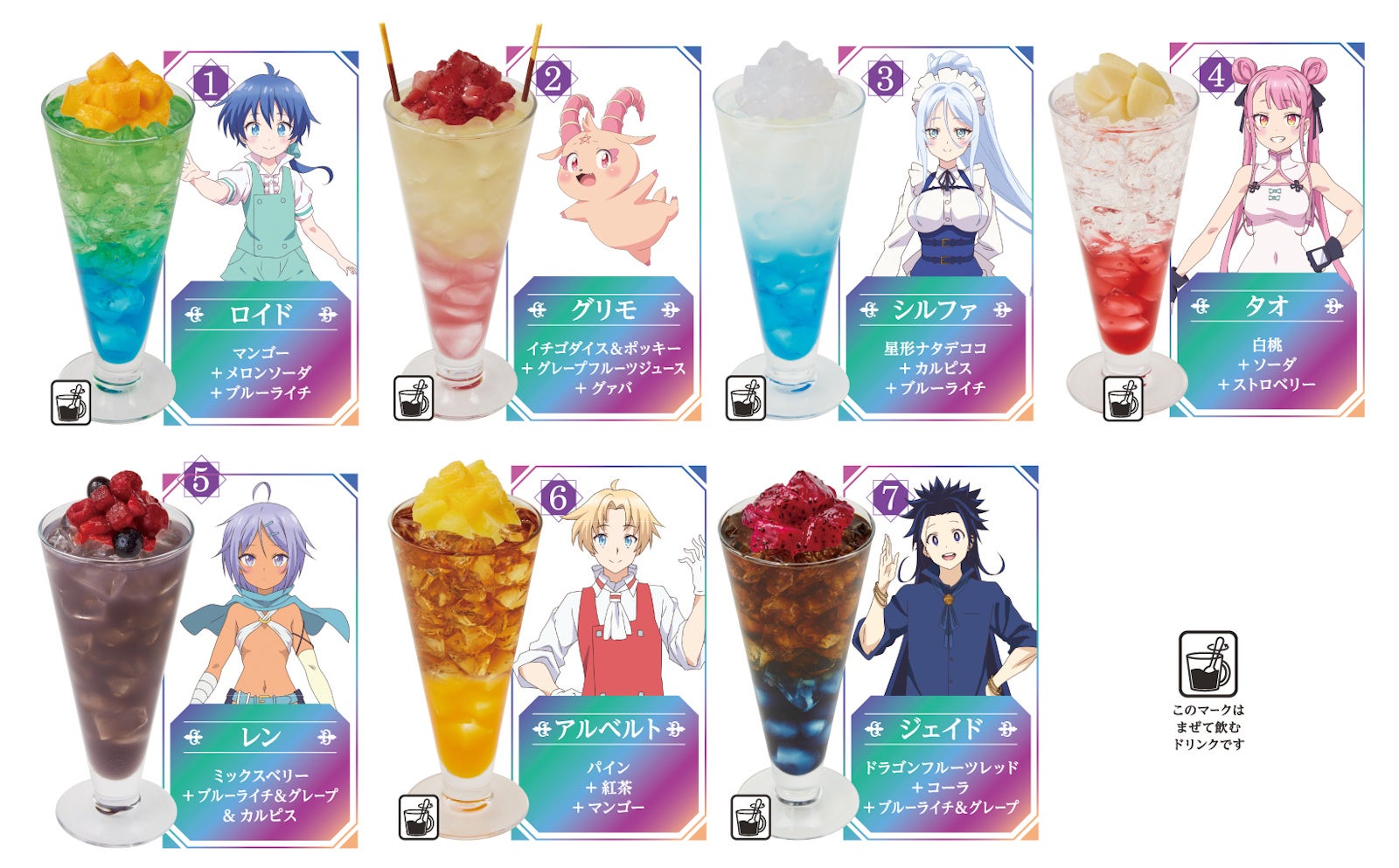 コラボドリンクは、作品のキャラクター「ロイド」「グリモ」「シルファ」「タオ」「レン」「アルベルト」「ジェイド」をイメージした全7種【各750円(税込)】をご用意します。さらに、注文特典としてコラボドリンク1品ご注文につき、オリジナルポストカード【全22種:第1弾ポストカード7種/第2弾ポストカード15種】の中から、1枚ランダムでプレゼント!