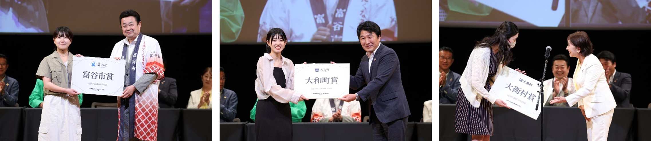 大和町受賞者:田村成海さん「受賞できてとてもうれしい。この動画を見て大和町に興味を持ってくれる人がひとりでも増えるとうれしいです。」浅野俊彦大和町長「大和町にしかない綺麗な自然の美しさを表現してくださってありがとうございます。工業団地で有名ですが、綺麗な大自然やワイナリーや温泉などもあるのでぜひお越しいただきたい。」