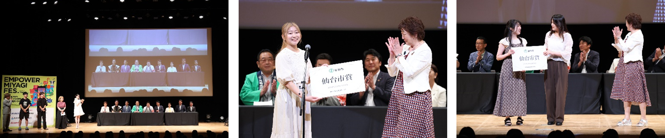 仙台市受賞者:五十嵐有姫さん、佐藤りこさん「受賞できてとてもびっくりしています。仙台の魅力を皆さんにわかってもらえてうれしい。」「実際しらべると知らなかったことがいっぱいあってそれを皆さんに知ってもらえてうれしい。」郡和子仙台市長「ひょうたん揚げ、ずんだシェイクが超超おいしい!とても忘れられない味だと思うので、ぜひ食べてみてほしいと思います。」
