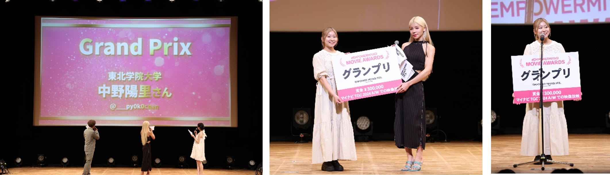 Toua、WATWINGが会場を盛り上げた!#EMPOWERMIYAGI MOVIE AWARDSのグランプリは、中野陽里さんに決定。「これからも宮城の魅力を発信し続けたい。」と受賞の喜びを語る。