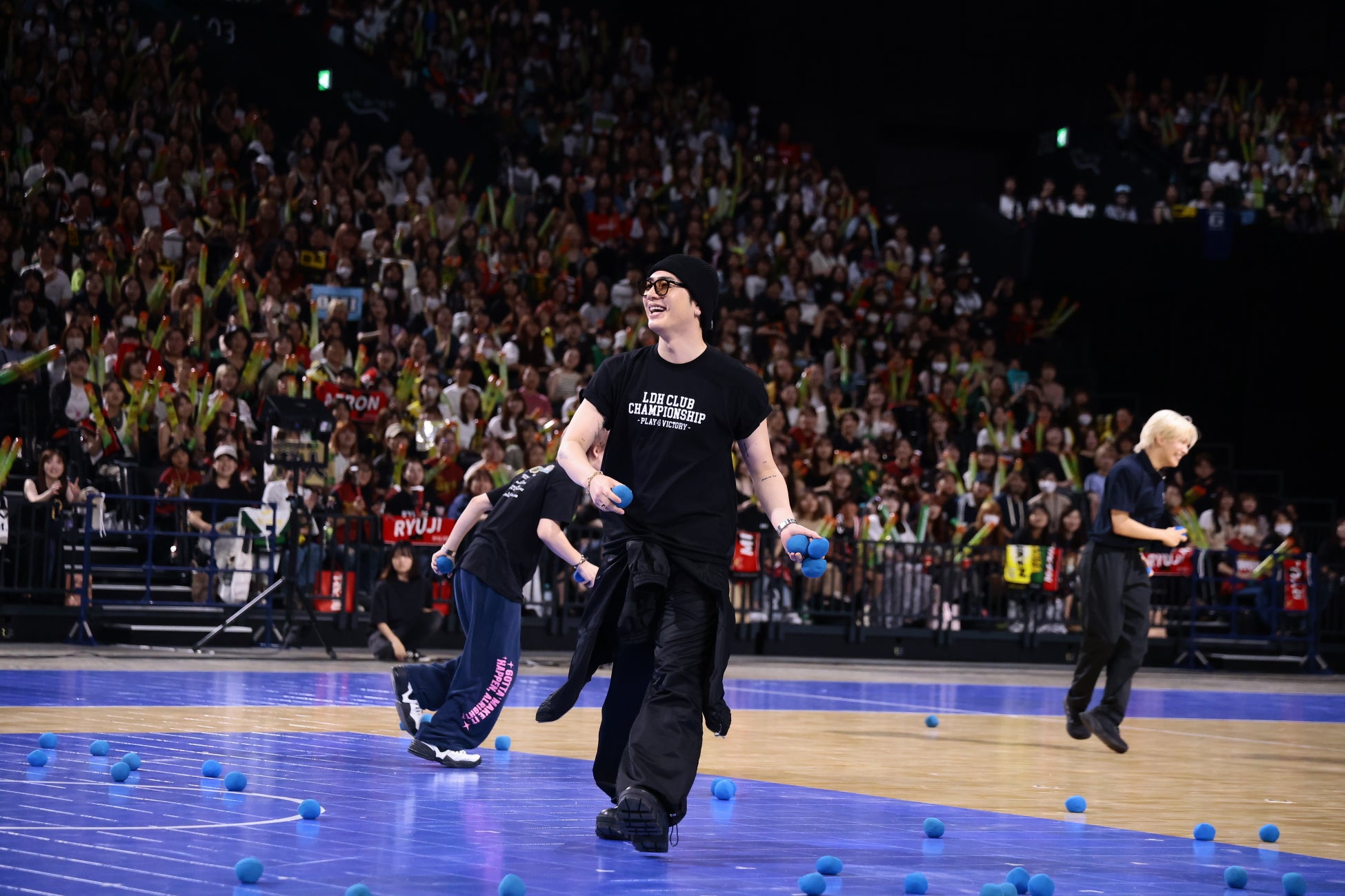 最初の種目は「10種障害物リレー」。パターボウリング、くじ引きリフティング、ぐるぐるバットキャッチボールなど各部活動に因んだ、4種目のバラエティ競技を含む合計10種類の障害物リレーを実施。黒ひげ危機一髪キャッチではチームのキャプテンの山下健二郎がナイスプレーを披露し、1位LDH FULL SWING CLUB(50P獲得)、2位NAKAME Lemon Stealerz(30P獲得)、3位LDH ESPERANZA(20P獲得)、4位中目黒リュージーズ(10P獲得)となった。「借り物競走」ではくじを引き、指定されたエリアの客席からお題に沿った物を借りてくることなり、近くの席まで足を運んでくるメンバーにファンは歓喜の声をあげた。片寄涼太は「ご祝儀袋」、ØMIは「新札(ピン札で)」、数原龍友は「TikTokにLDHのダンス動画を上げている人」、日髙竜太は「LDHの個別ファンクラブに3つ以上入っている人」、AKIRAは「レンズなしのメガネ」など、お題の物を所持しているファンを次々と見つけ、参加者全員が制限時間内にクリア。全チームそれぞれ90Pを獲得した。