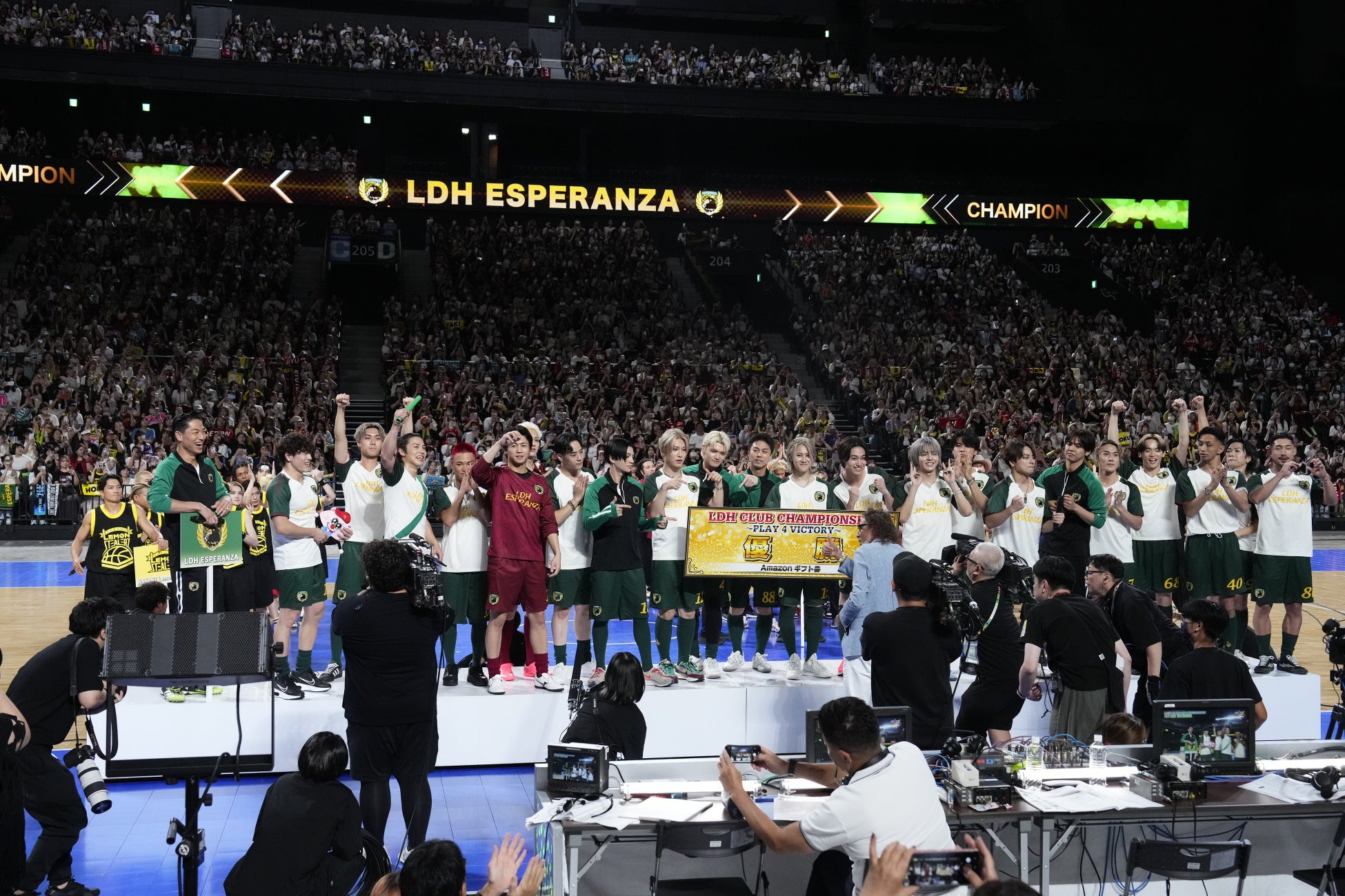 全ての競技が終わり、総合順位は1位LDH ESPERANZA(640P)、2位中目黒リュージーズ(580P)、3位LDH FULL SWING CLUB(550P)、4位NAKAME Lemon Stealerz(480P)と発表。前回も優勝したLDH ESPERANZAは今回でなんと2連覇を達成。この快挙を受け、キャプテンのAKIRAは「今回若手ががっちり頑張ってくれました」と新しく入ってきた仲間を称え、ニッコリ。会場からも「おめでとうー!」と祝福の声が飛び交った。また今回最も活躍したMVPにはこの日、29歳の誕生日を迎えたSUZUKIが選出。驚きながらも前に出てきたSUZUKIは、「まさかMVPに選ばれると思っていなかったので、言葉が出ないです。でも最高の誕生日になりました。皆さんありがとうございました」とコメント。客席の撮影OKタイムを経た後、EXILEの「Love, Dream & Happiness」を会場にいる全員で歌いながらフィナーレへ。LDH所属者による4つのクラブチームの対決は大盛況のなか幕を閉じた。