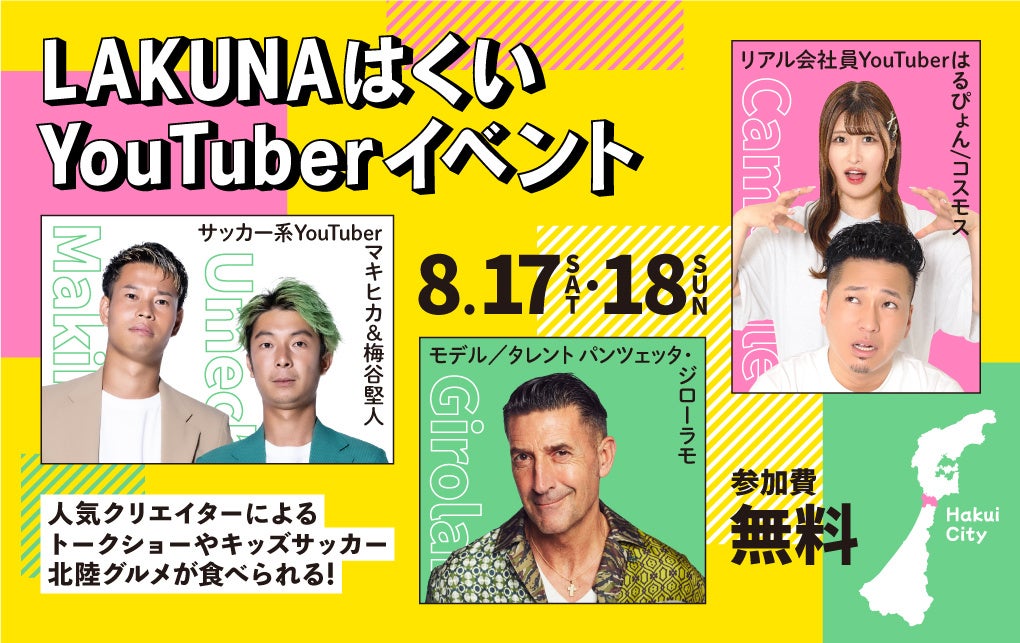 第一弾として羽咋市にぎわい交流拠点「LAKUNA はくい」ならびに眉丈台地スポーツ広場にてイベントを開催いたします。
