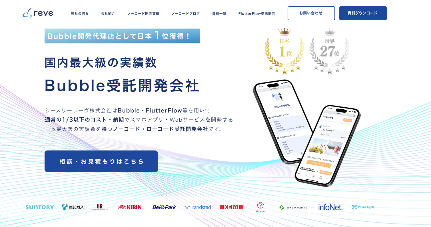 シースリーレーヴ株式会社は、Bubble・FlutterFlowなどのノーコード開発を行う、日本最大級のノーコード受託開発会社です。