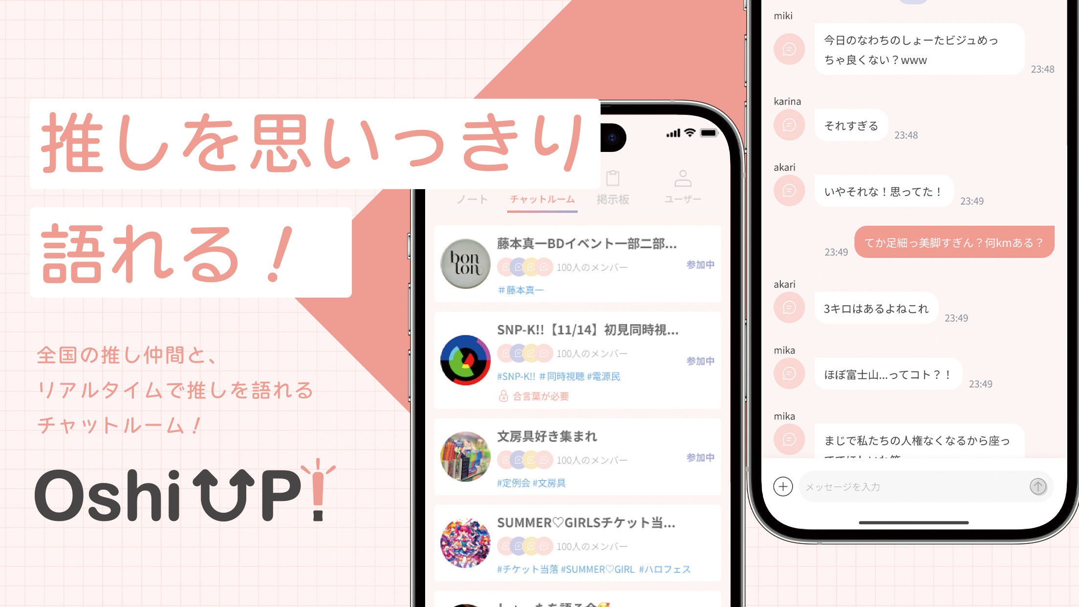 推し仲間を見つけられる!語れる!チャット機能