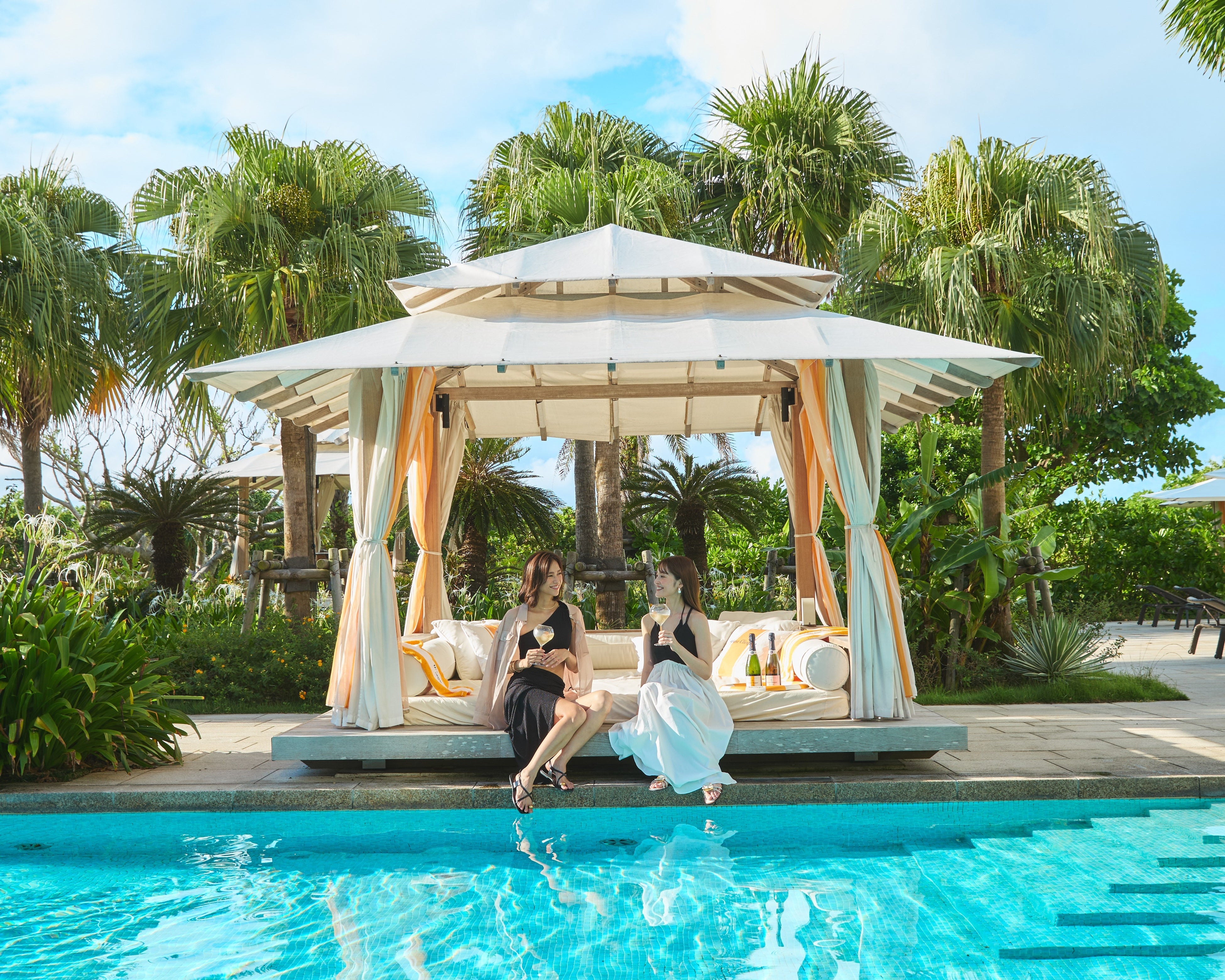 広大でラグジュアリーなプールサイドで、ヴーヴ・クリコカラーに彩られたカバナやサンベッドでリラックスしながら「ヴーヴ・クリコ リッチ オン アイス」を味わう、ラグジュアリーなリゾートタイムをお楽しみください。