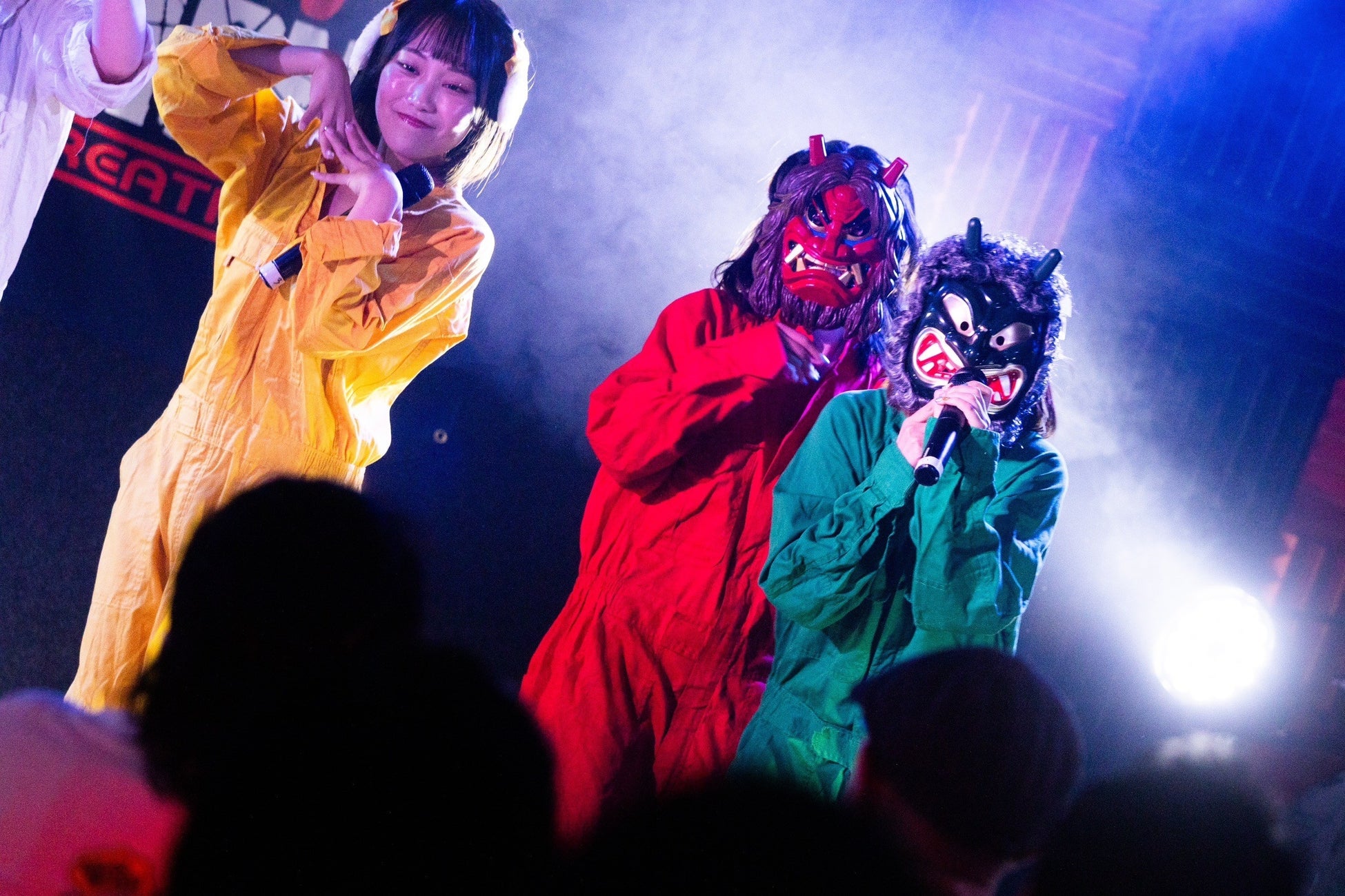 この日は秋田をテーマにした新曲「秋田rock ‘n’ roll」のMVがどこよりも最速で披露され、その中でも着用していたツナギ衣装でメンバーが登場したり、秋田名物なまはげが乱入したり⁉ツッコみどころも満載なけっぱって東北らしいステージで会場を沸かせた。
