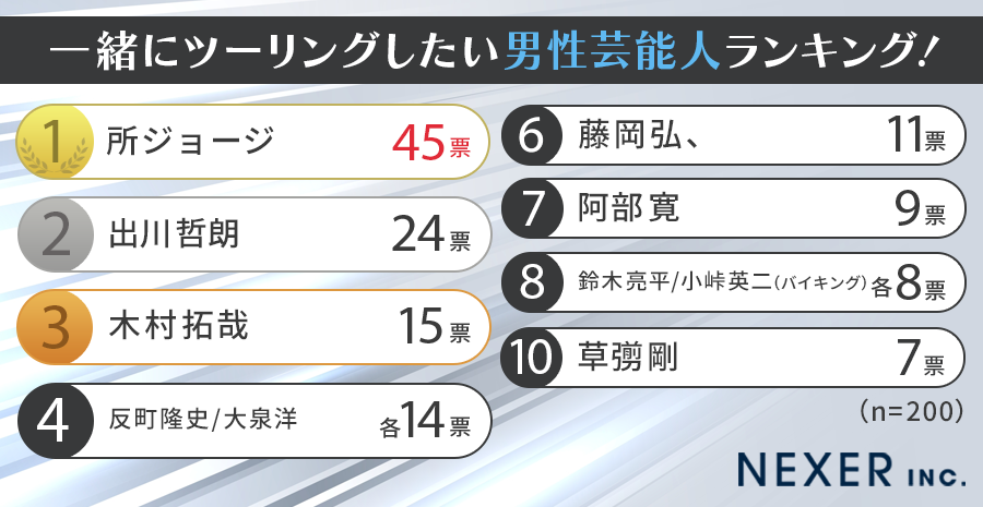 そこで今回はバイクリサイクルジャパンと共同で、事前調査で「バイク乗り(バイクを走らせるのが好き)」と回答した全国の男女200名を対象に「一緒にツーリングしたい男性有名人」についてのアンケートをおこないました。