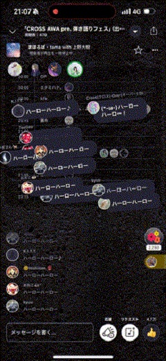▼2024年5月「CROSS AWA pre. 弾き語りフェス」(チャットでのシンガロングの一部)